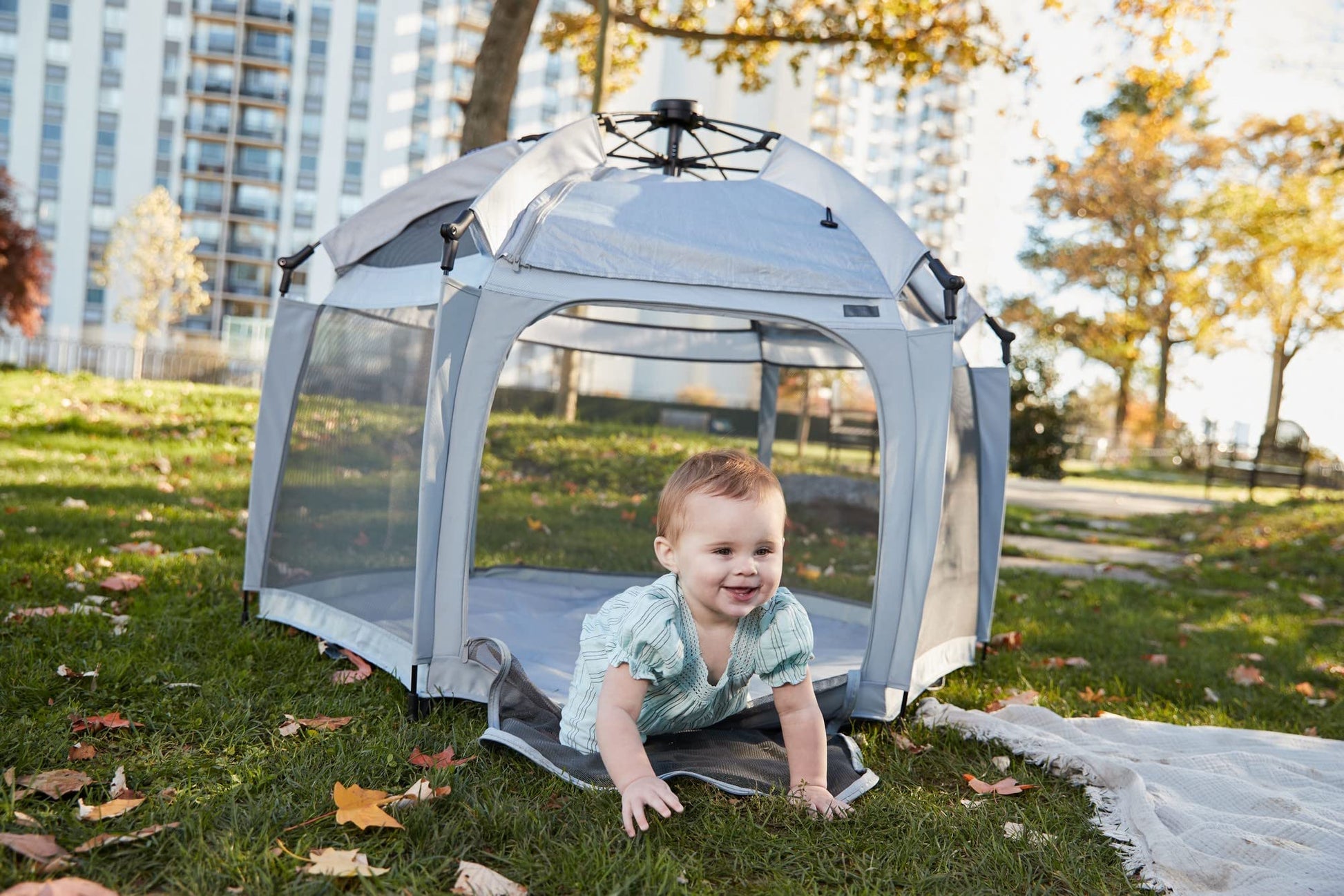 - Q: Does the play yard provide sun protection? A: Yes, the play yard features a zippered roof that can be closed for sun protection or opened for increased airflow.