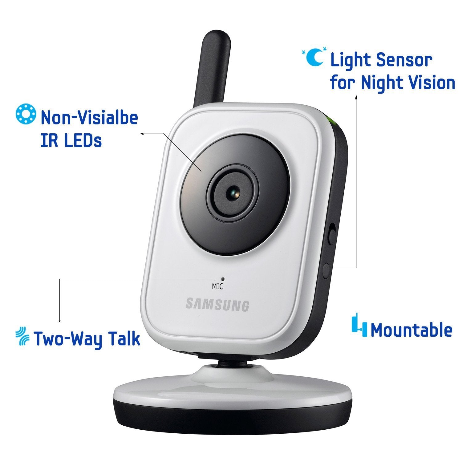 - Q: How many cameras can the monitor support? A: The Samsung SEW-3036W Baby Monitor can be expanded to support up to four cameras, allowing you to monitor multiple areas.