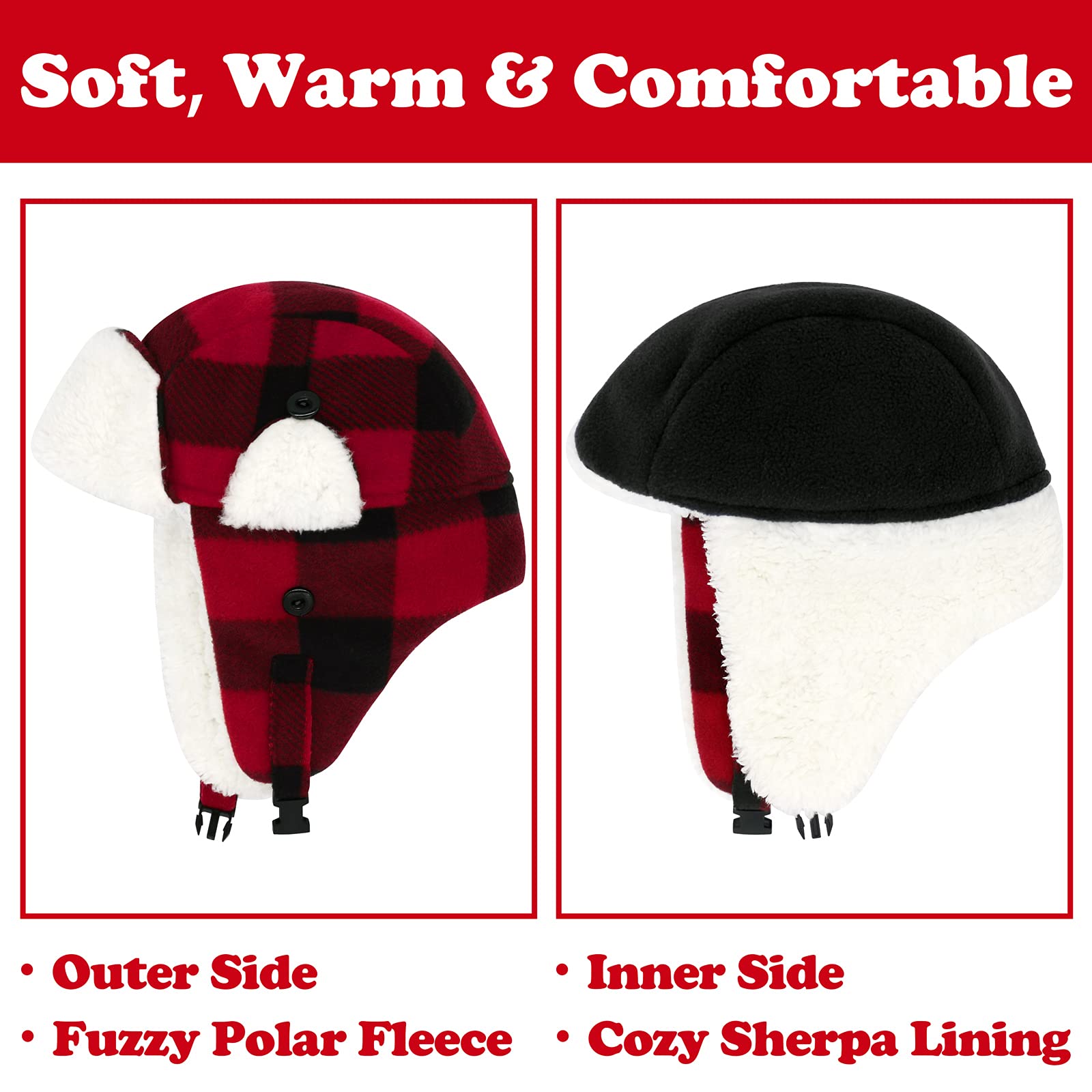- Q: What makes this hat suitable for cold weather? A: The hat is triple-layered, featuring a soft polar fleece outer layer, a cozy sherpa lining, and an additional cotton layer, providing excellent insulation against the cold.