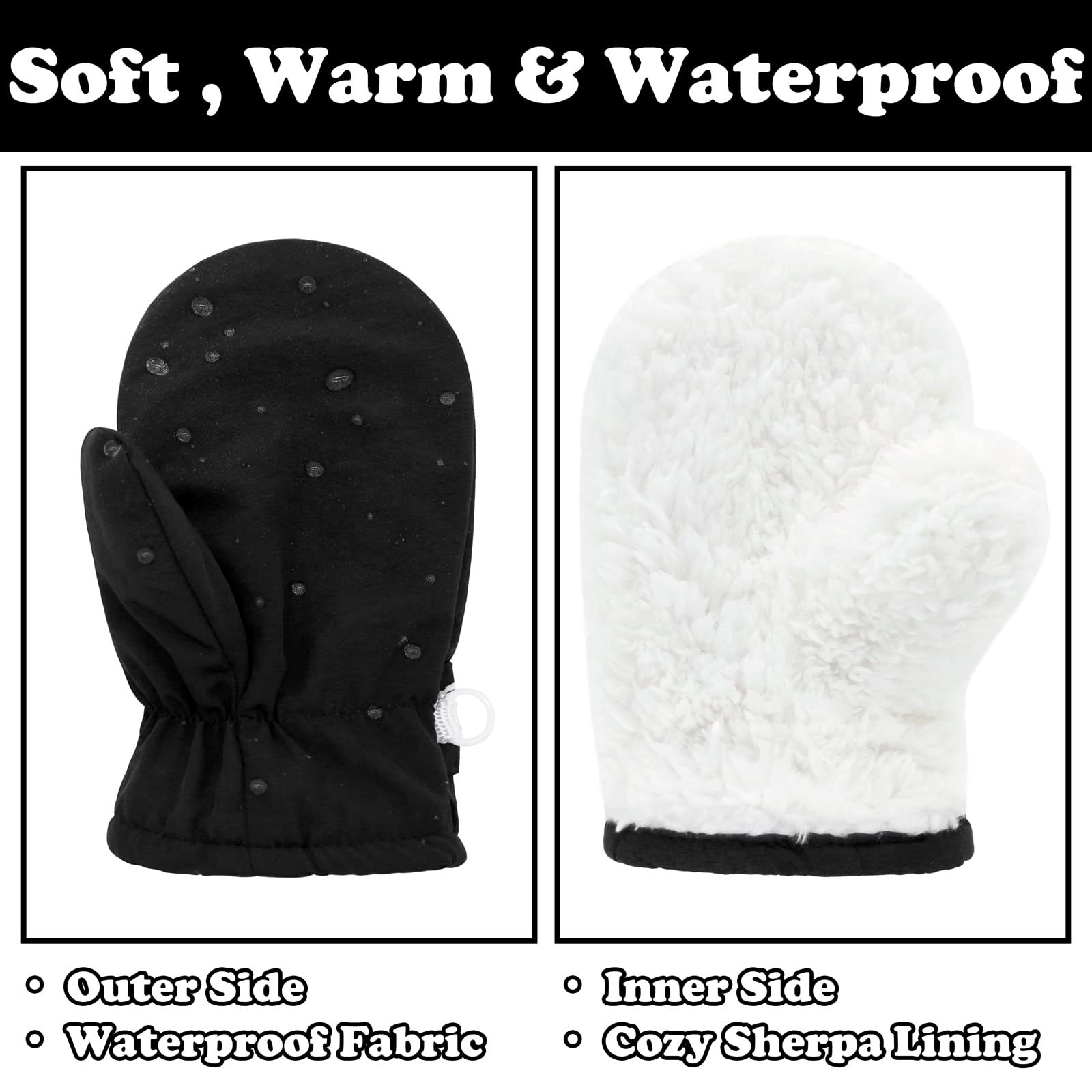 - Q: How do these mittens stay on my child's hands? A: The mittens have a hook and loop closure and an elastic band at the wrist to ensure a secure fit.