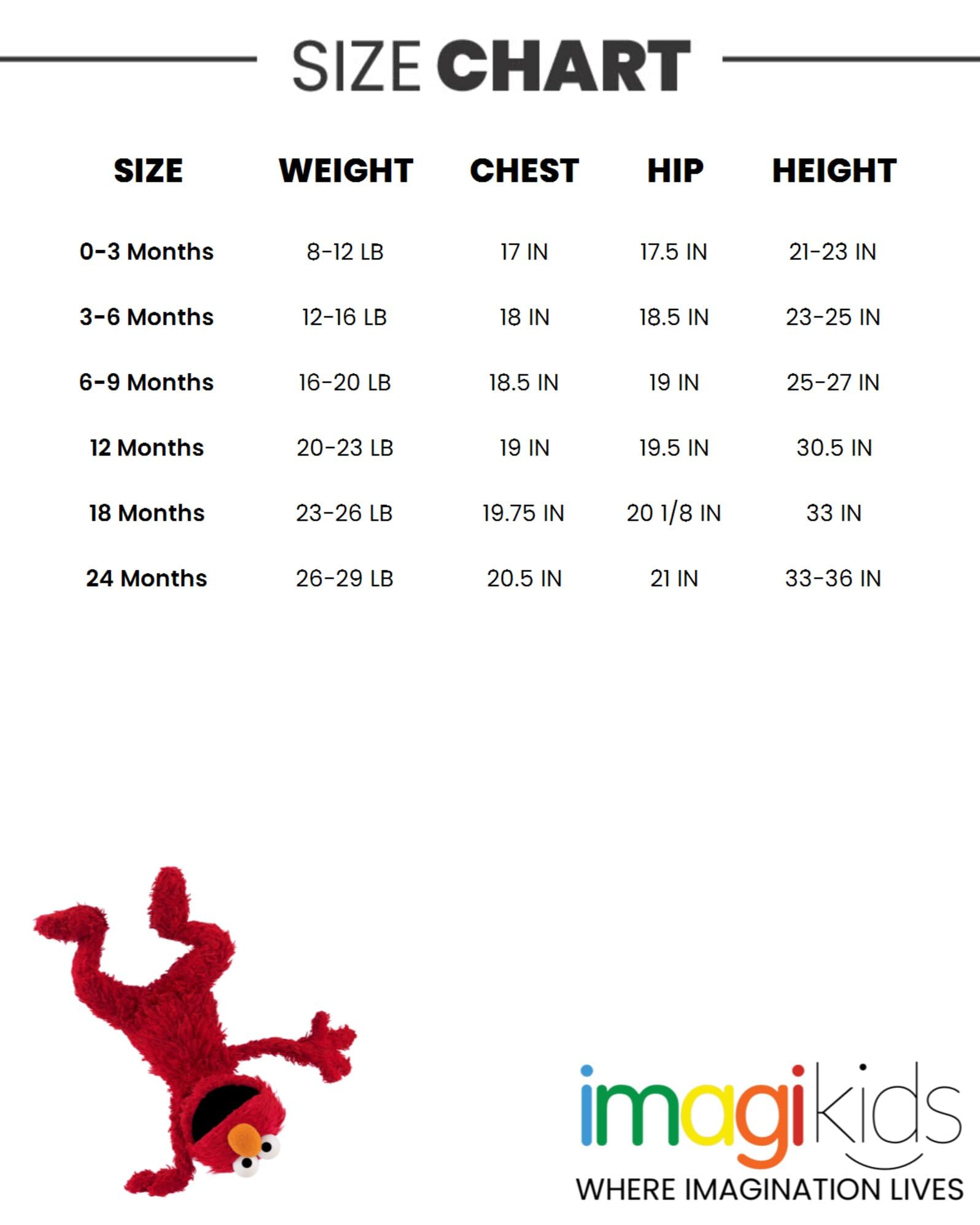 - Q: What characters are featured on the bodysuits? A: The bodysuits feature popular Sesame Street characters including Elmo, Cookie Monster, Abby Cadabby, Oscar the Grouch, Bert and Ernie, and Big Bird.