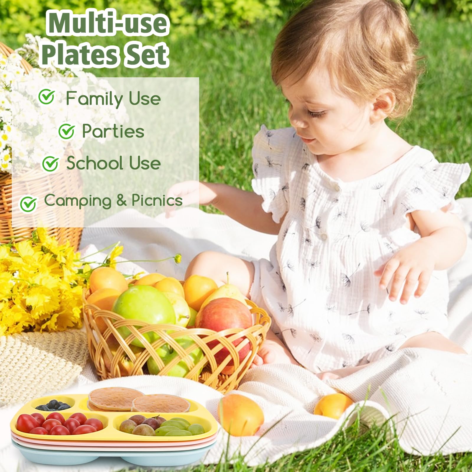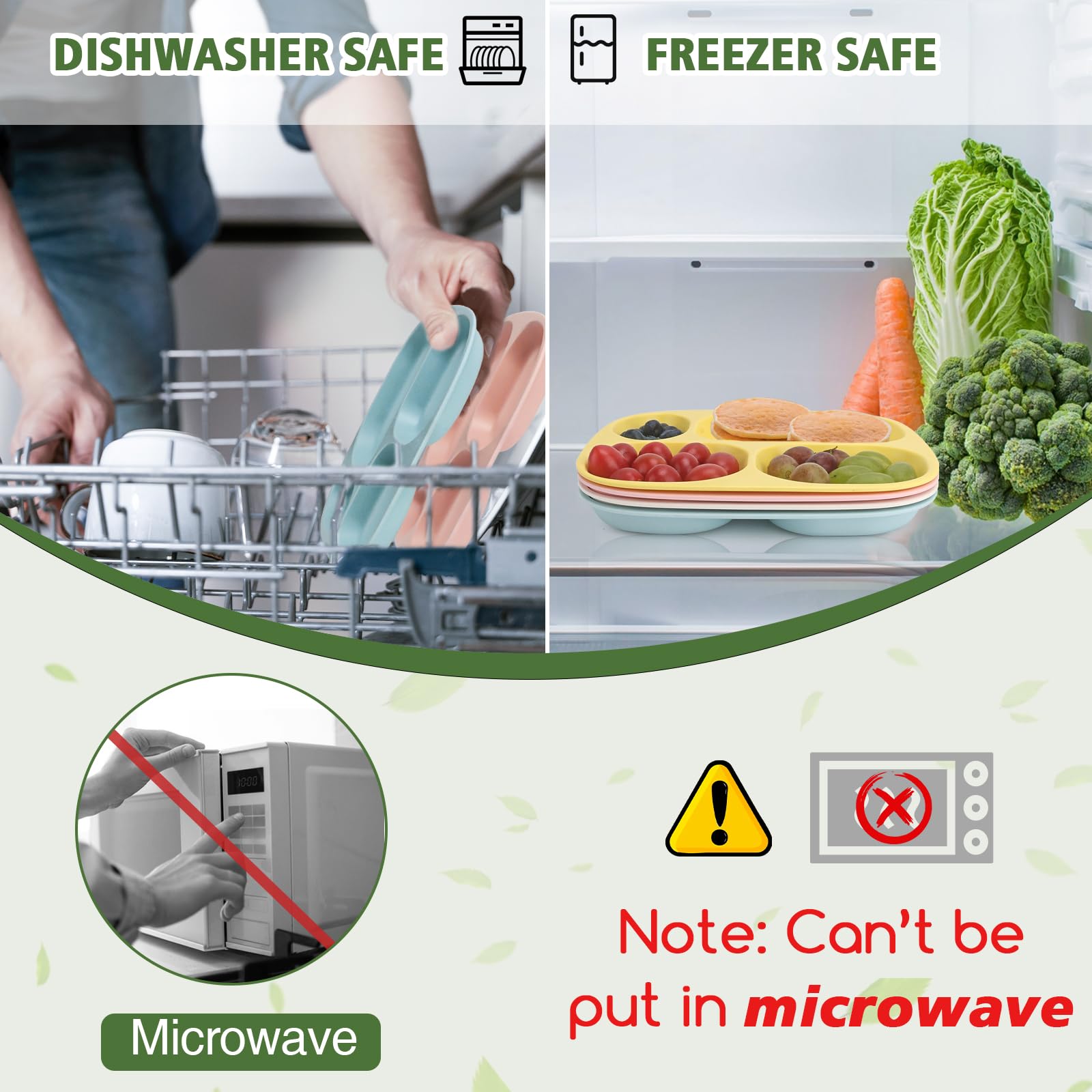 - Q: How many plates are included in a set? A: Each set includes four divided plates, perfect for family meals or gatherings.