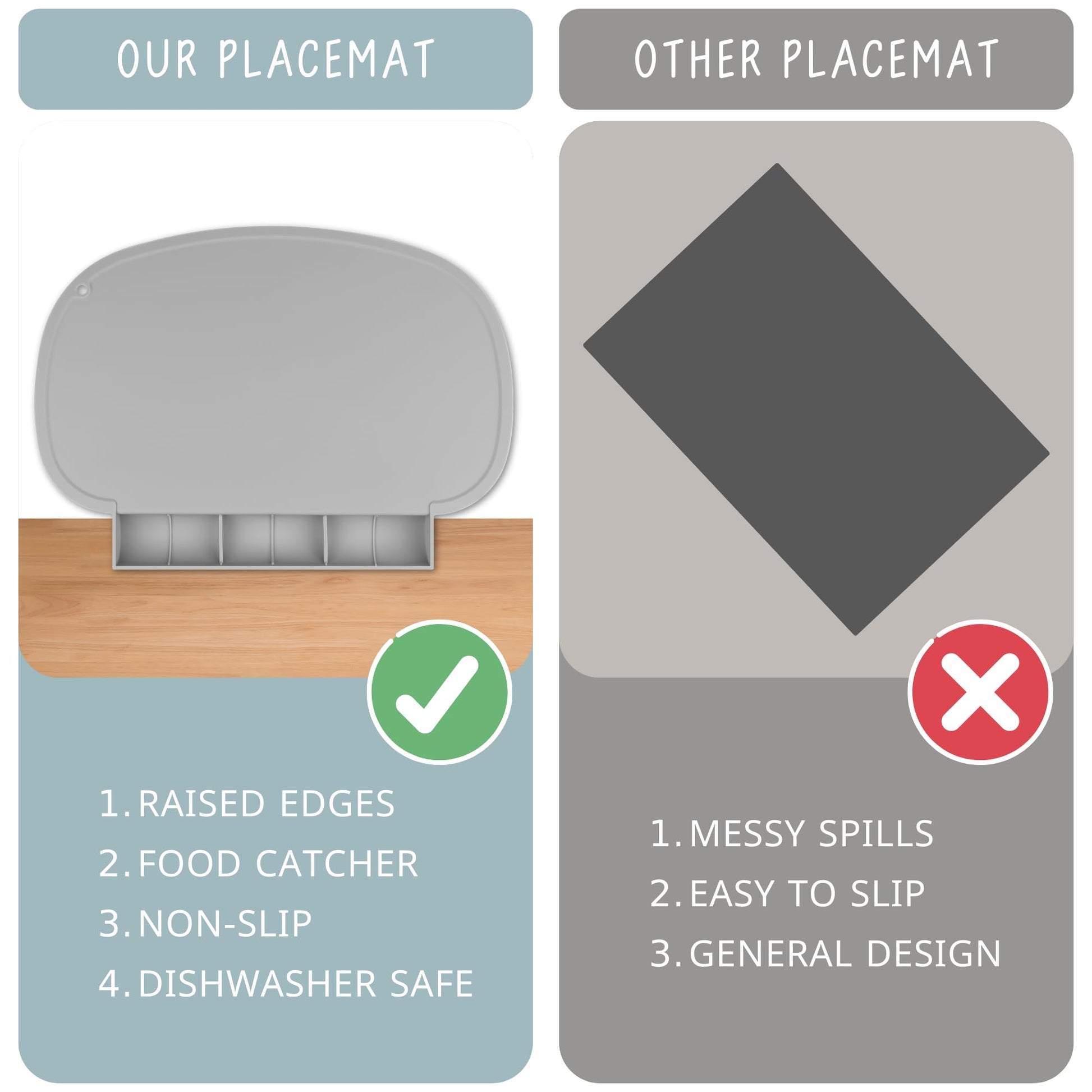 - Q: What are the benefits of using a silicone placemat? A: Silicone placemats help minimize mealtime messes, are easy to clean, and provide a non-slip surface for stability during feeding.