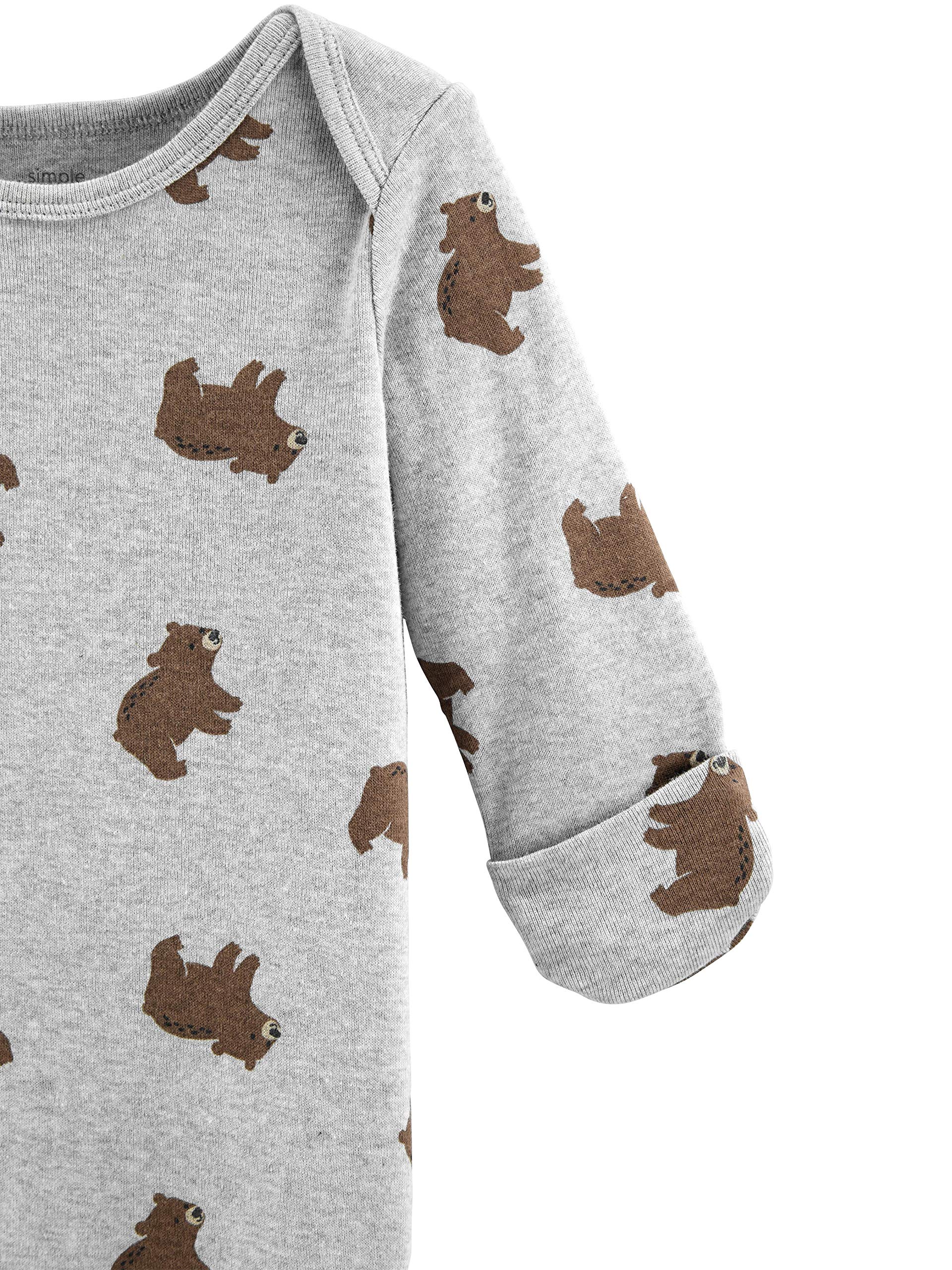 - Q: How many gowns are included in the pack? A: This product comes in a pack of 3 gowns featuring bear, stripe, and dinosaur designs.