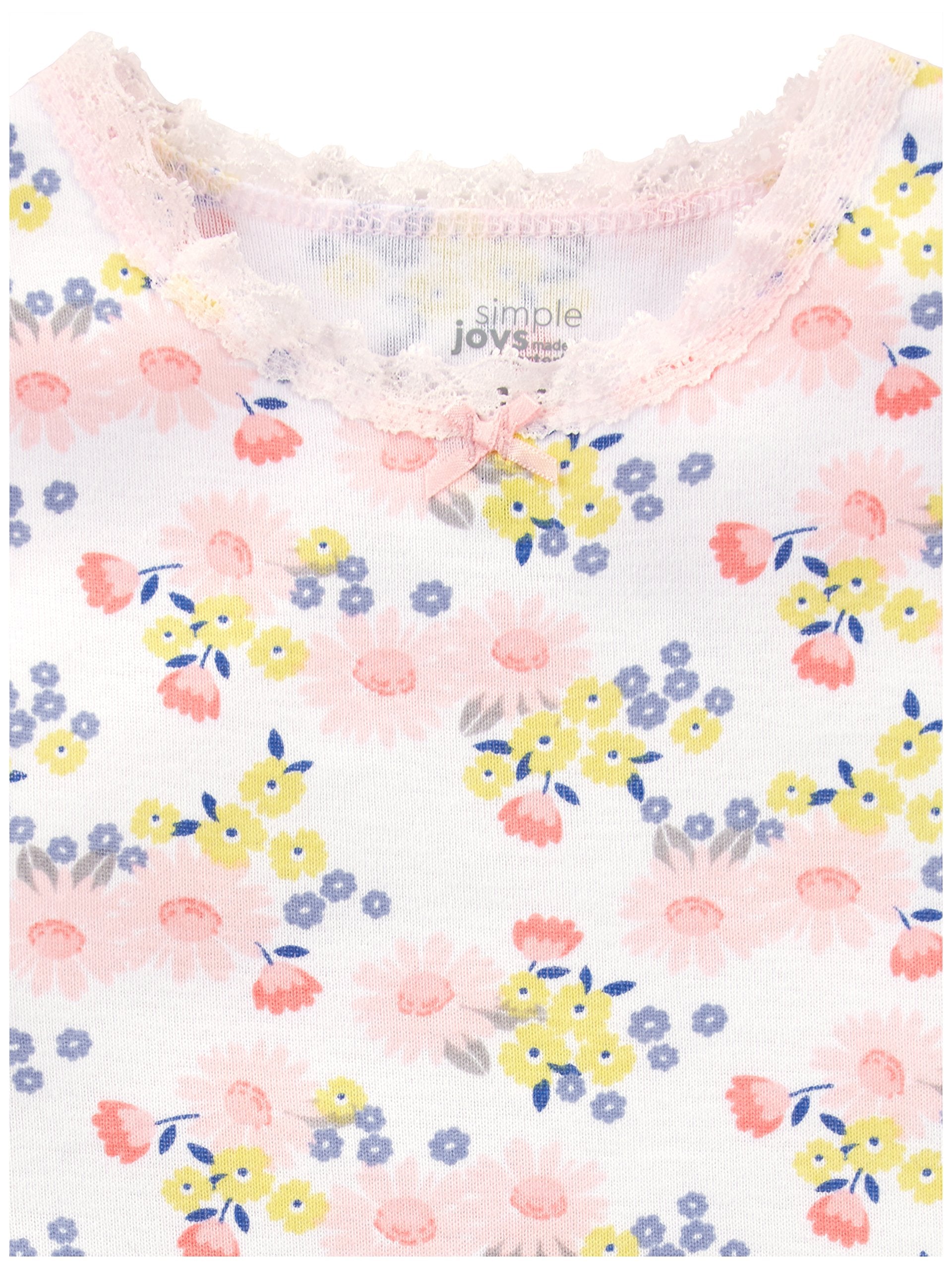 - Q: What is included in the pack of Simple Joys by Carter's Baby Girls' Sleeveless Bodysuit? A: The pack includes six sleeveless bodysuits featuring a variety of multicolor designs such as floral patterns, forest animals, and fruit.
