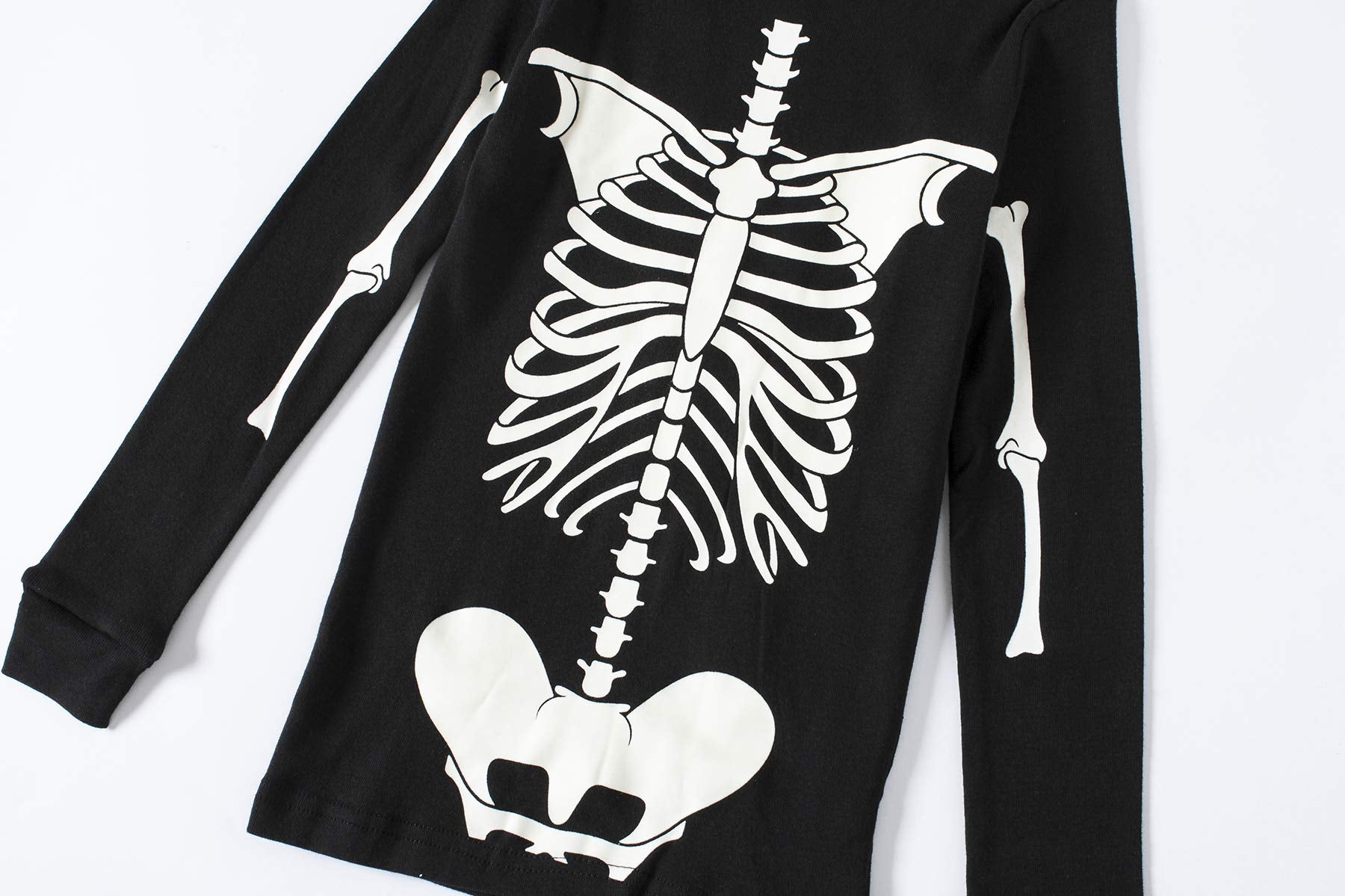 - Q: Are there any special features of these pajamas? A: In addition to being made of soft cotton, these pajamas are designed with a snug fit for safety and feature a fun glow-in-the-dark skeleton design.