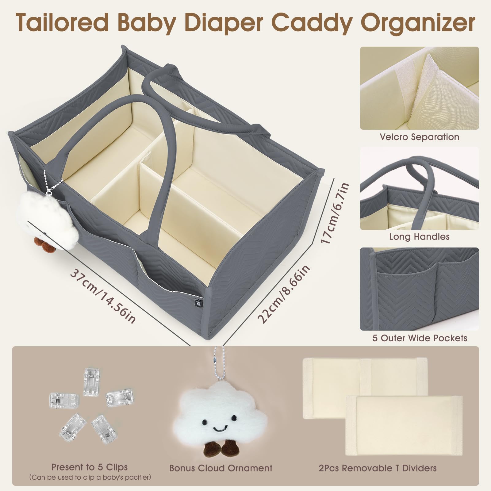 - Q: Does the caddy come with any dividers? A: Yes, the diaper caddy comes with two removable organizing dividers to help customize the storage space.