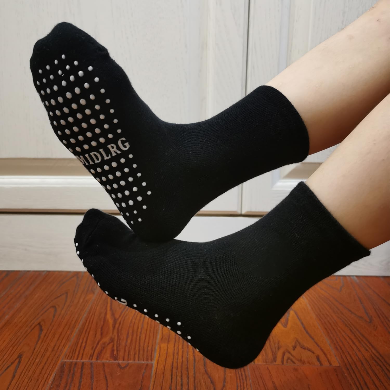 - Q: Do these socks help prevent slipping on slippery surfaces? A: Yes, the socks feature large grip dots at the bottom that provide traction and prevent slipping on hardwood floors and tiles.