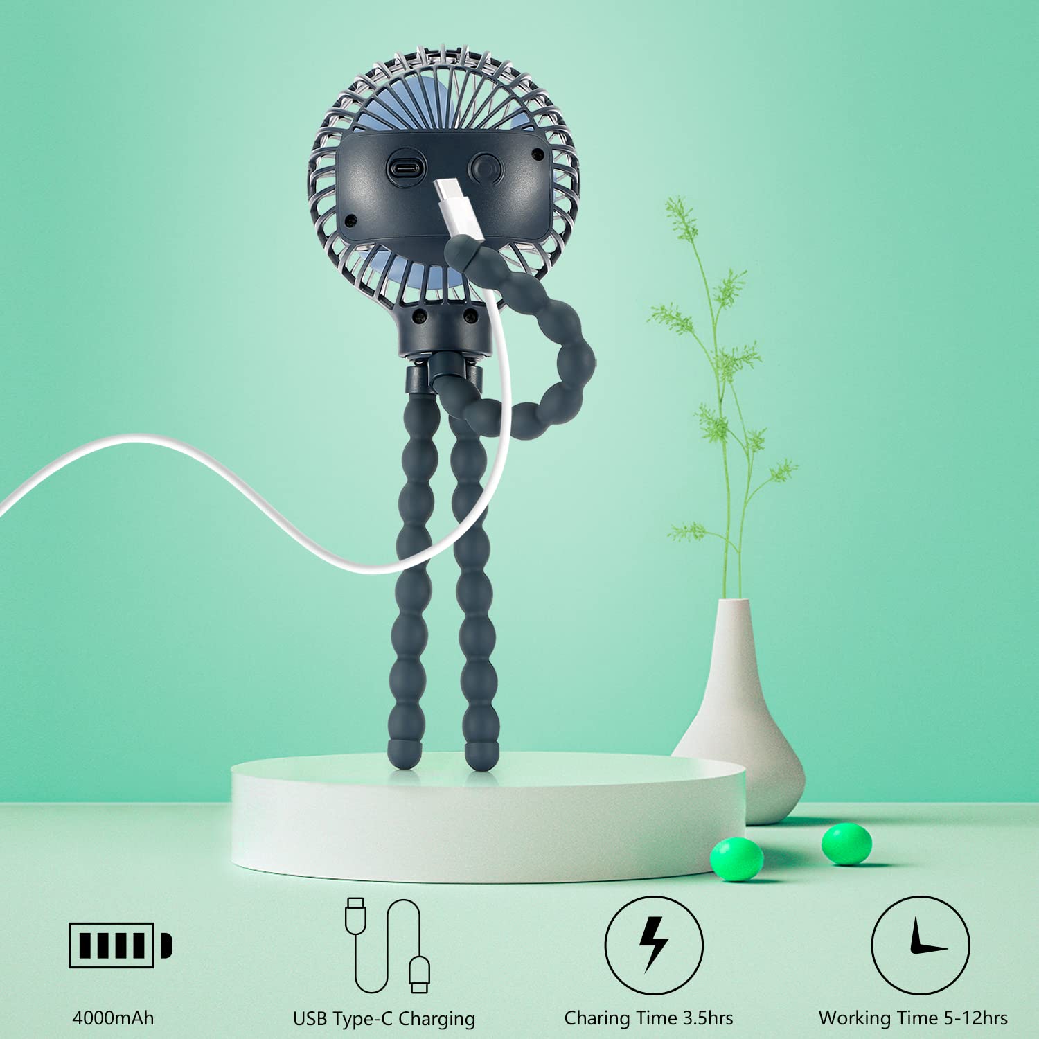 - Q: What are the main features of the snawowo Mini Handheld Fan? A: The snawowo Mini Handheld Fan features an upgraded flexible tripod design, a built-in rechargeable 4000mAh battery for 5 to 12 hours of use, USB Type-C charging, adjustable three-speed settings, and a brushless motor for strong airflow with low noise.