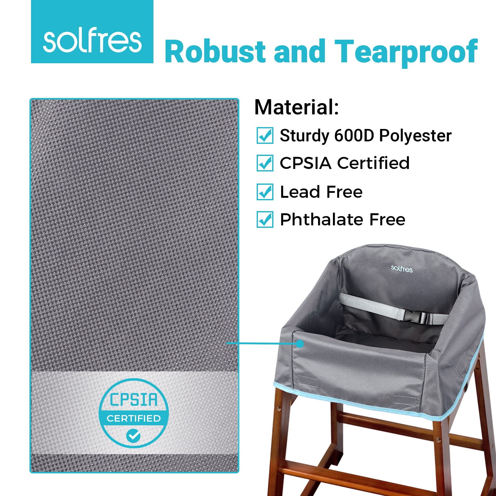 - Q: What is the material of the Solfres Dual-Belt High Chair Cover? A: The Solfres Dual-Belt High Chair Cover is made from sturdy 600D polyester, which provides durability and resistance to tearing.