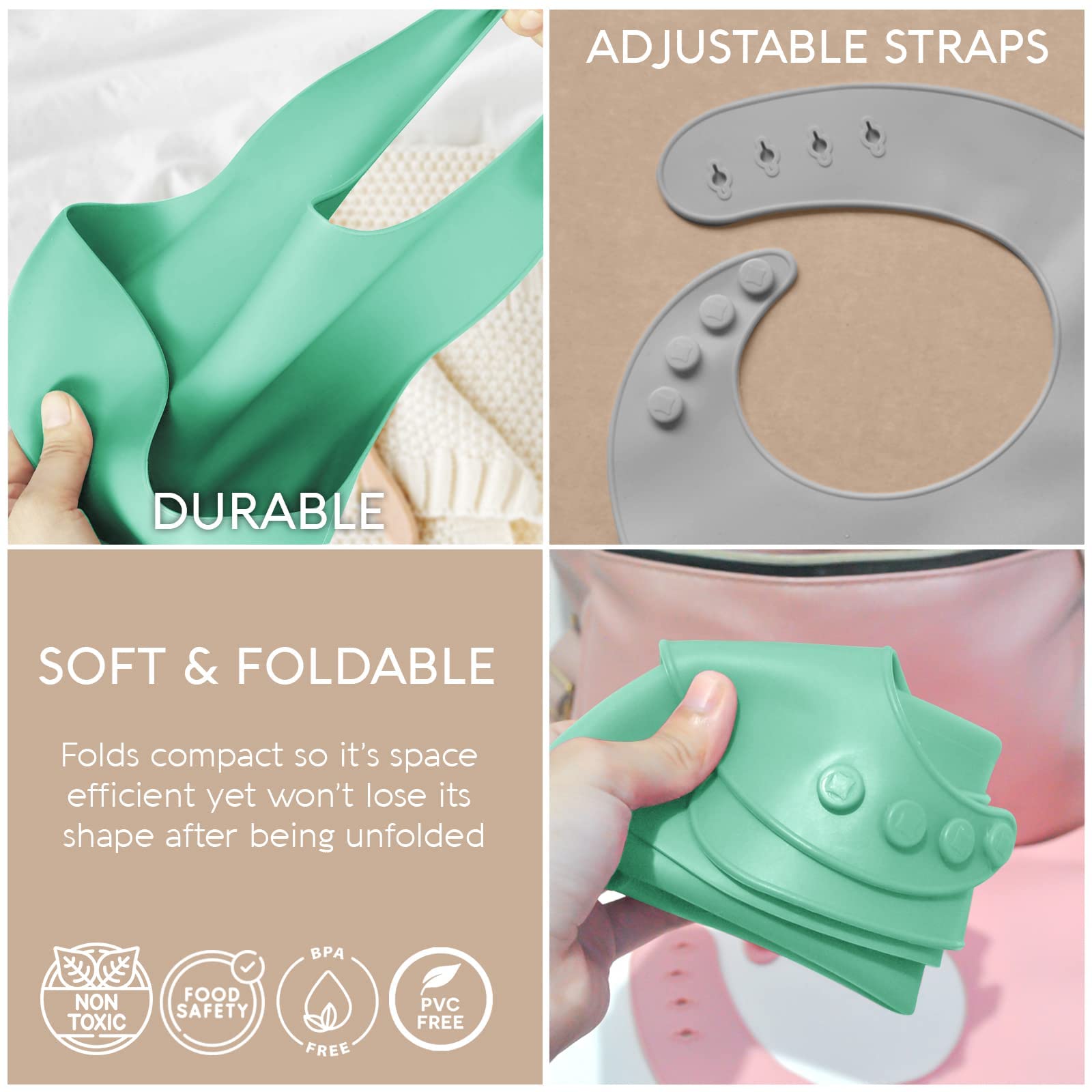 - Q: Can I travel with these bibs? A: Absolutely! The silicone bibs are easy to store in diaper bags, making them travel convenient for parents on the go.
