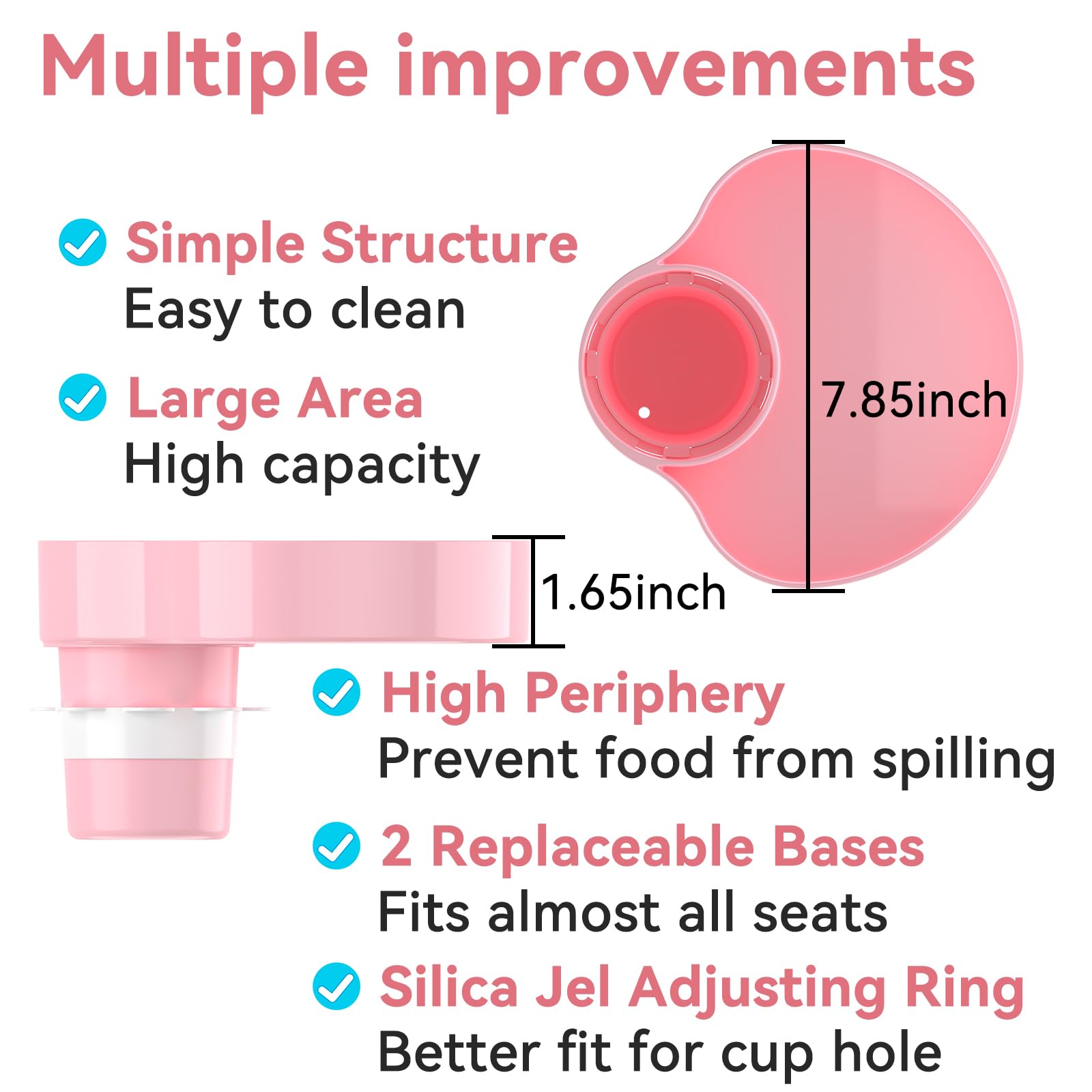 - Q: Does the tray prevent spills during travel? A: Yes, the car seat food tray has a periphery height of up to 1.65 inches, which helps prevent food and snacks from spilling even during movement.