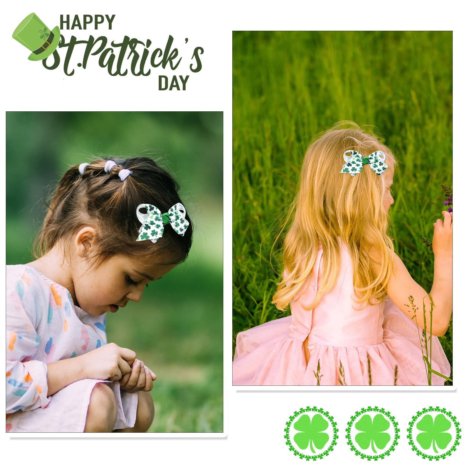 - Q: How many hair clips are included in the package? A: The package includes two St. Patrick's Hair Bow Shamrock Hair Clips.