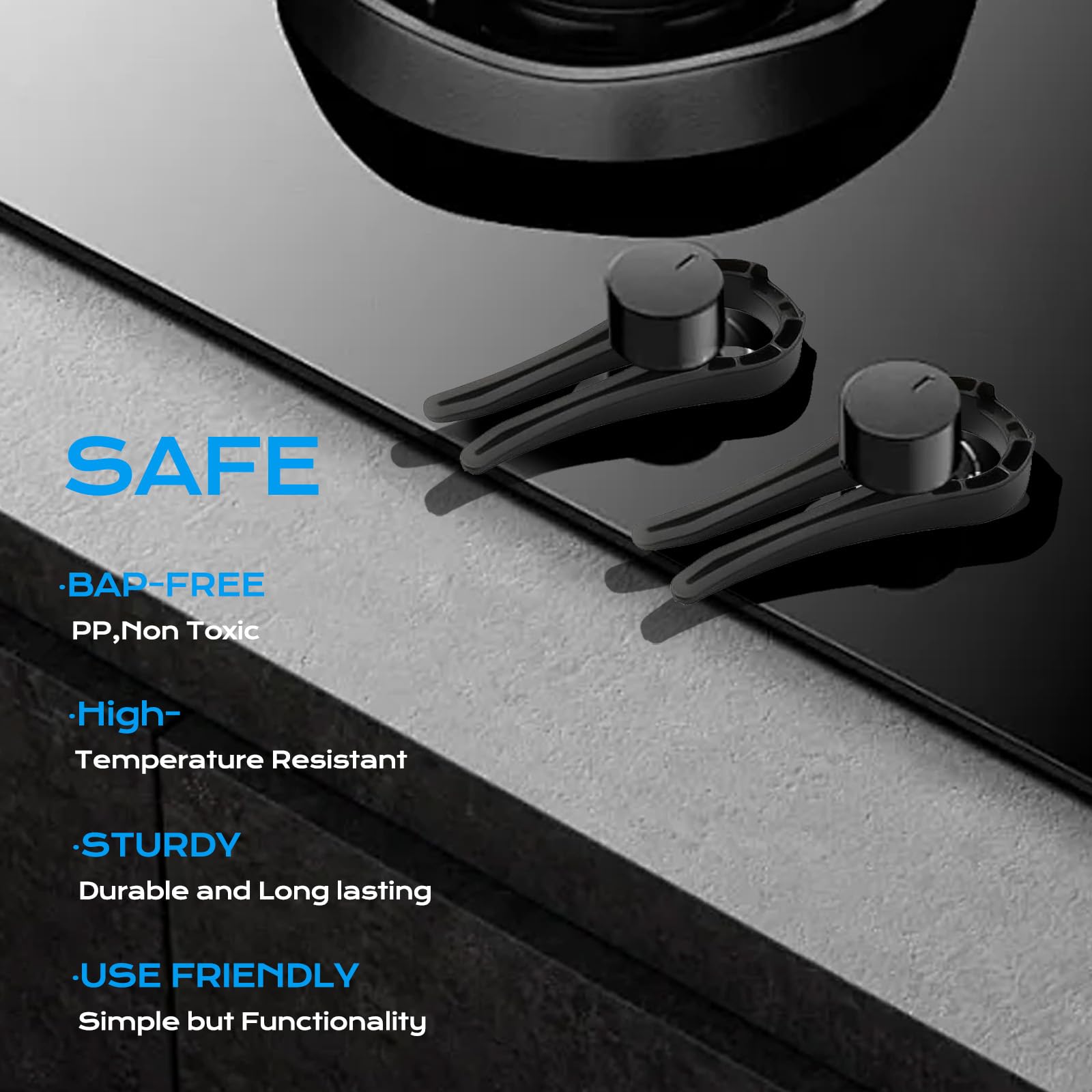 - Q: How do I install the stove knob safety covers? A: The stove knob safety covers can be installed in seconds without the need for tools or drills. Simply wedge the locks behind the stove knobs for easy installation and removal.