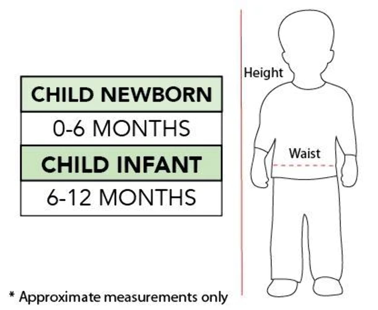 - Q: How do I know what size to choose for my baby? A: Costumes are not sized the same as regular clothing. It's recommended to review Rubie's size chart in the images provided for the best fit.