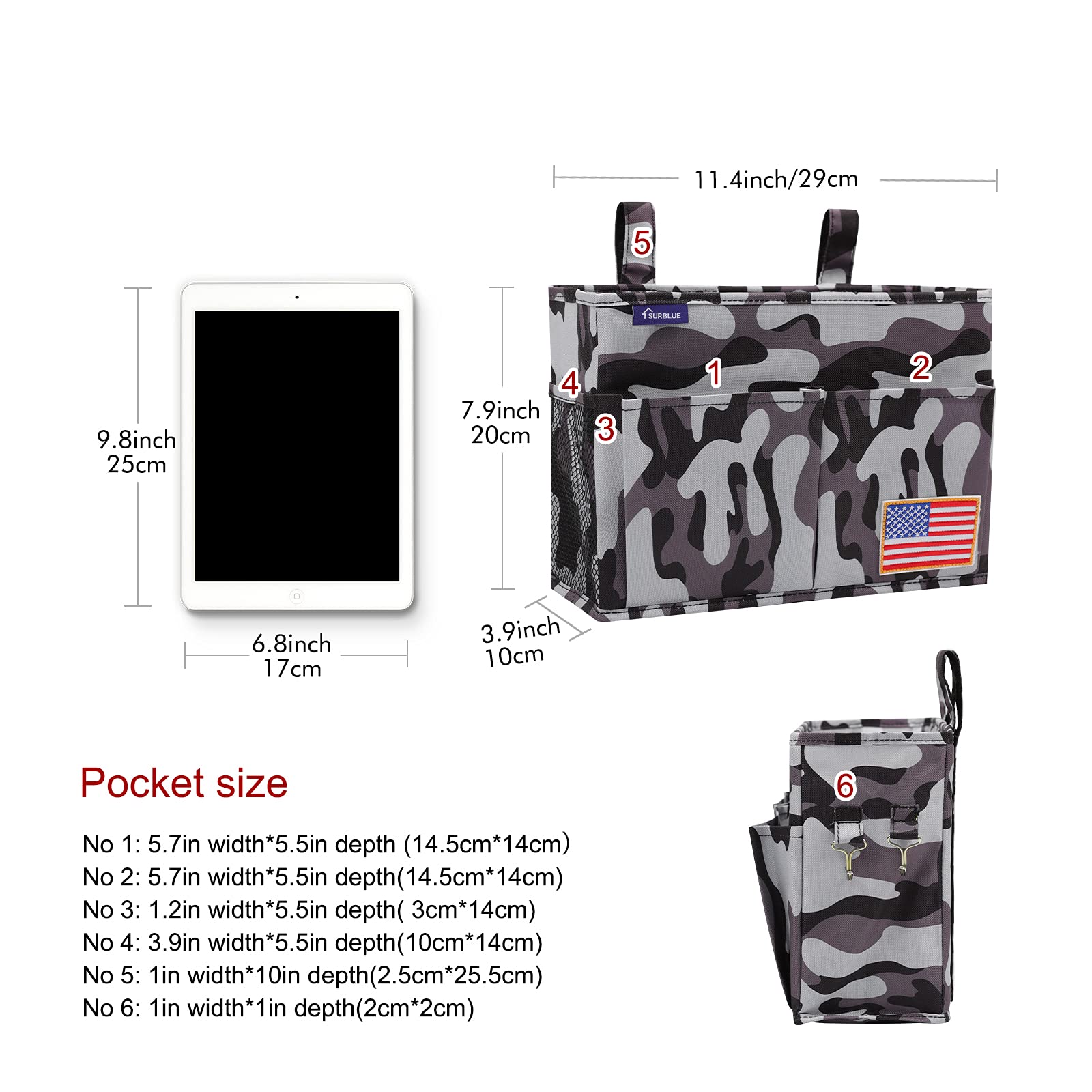 - Q: How many pockets does the organizer have? A: The organizer features four pockets and two hooks, providing ample storage for various bedside essentials.