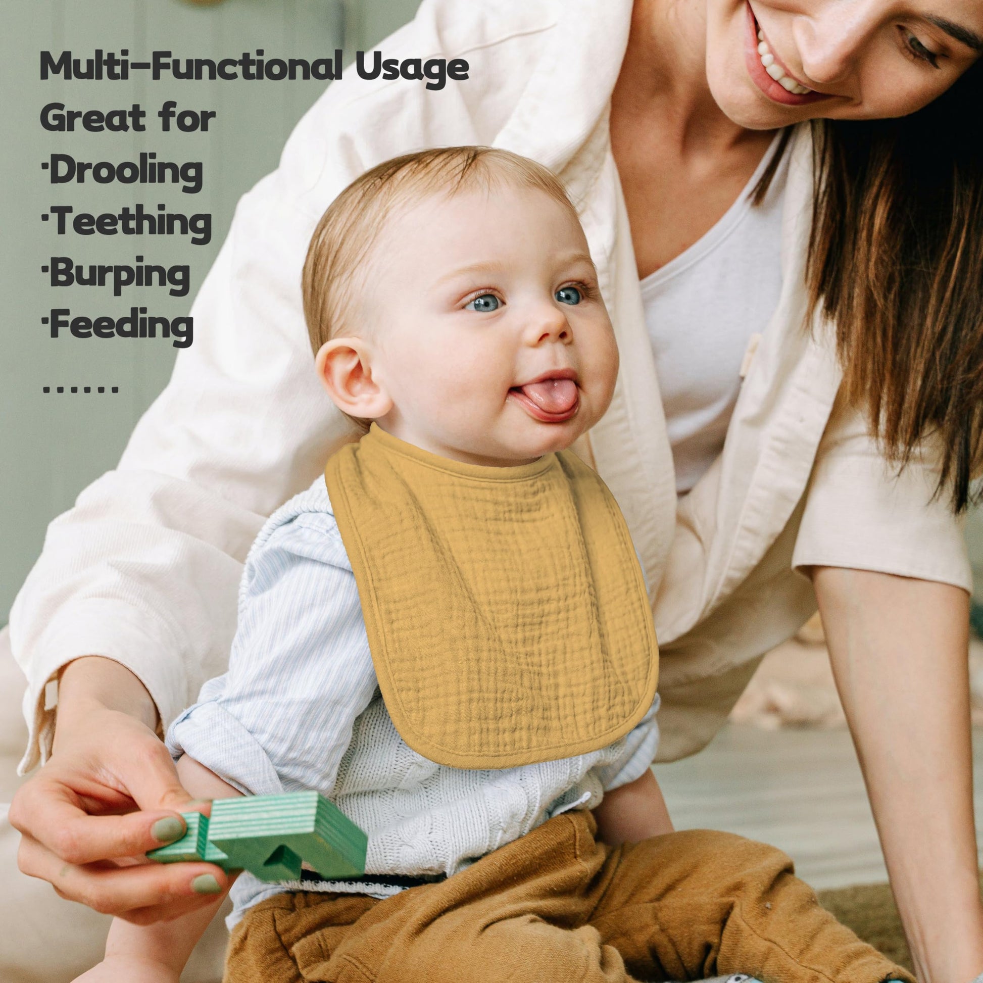 - Q: Can these bibs be used for purposes other than drooling? A: Yes, they are versatile and can be used for feeding, burping, handling spills, and even as a handkerchief on the go.