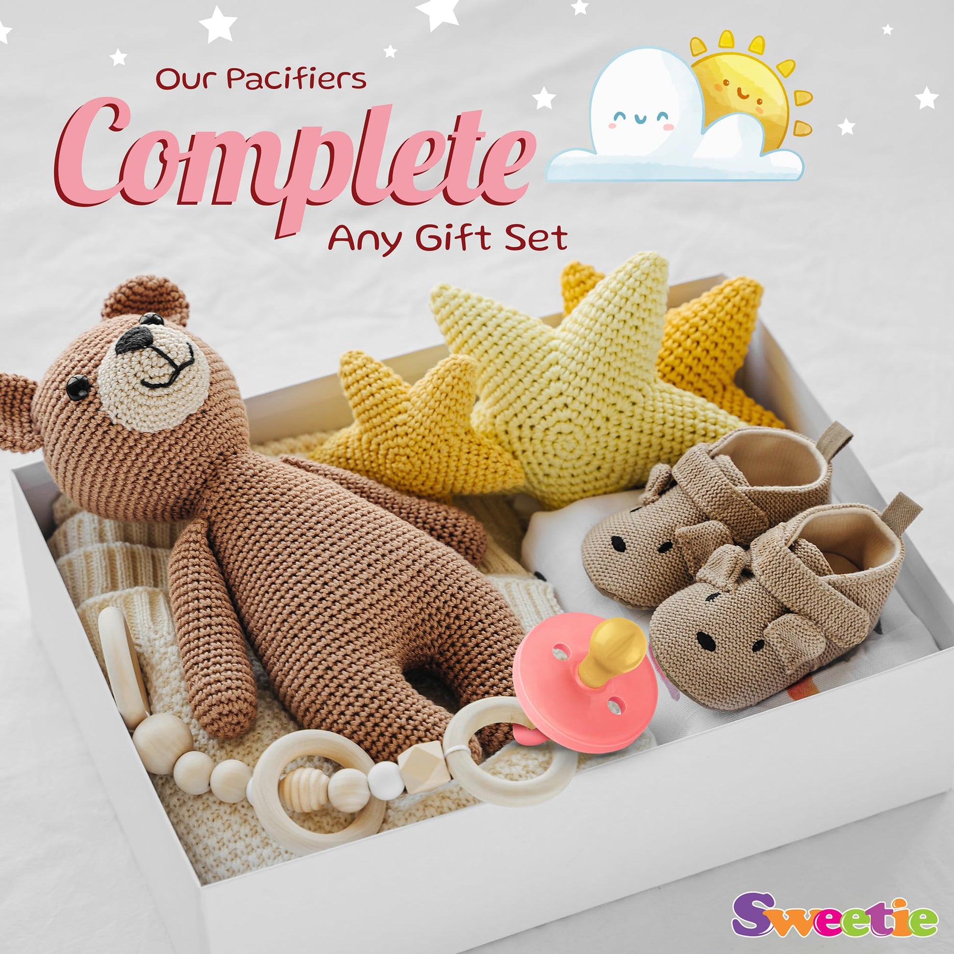- Q: How does the design of the SWEETIE Pacifier benefit my baby? A: The pacifier features a soft and natural rounded nipple that conforms to your baby's mouth, providing comfort and reducing the chance of leaving marks on their face.