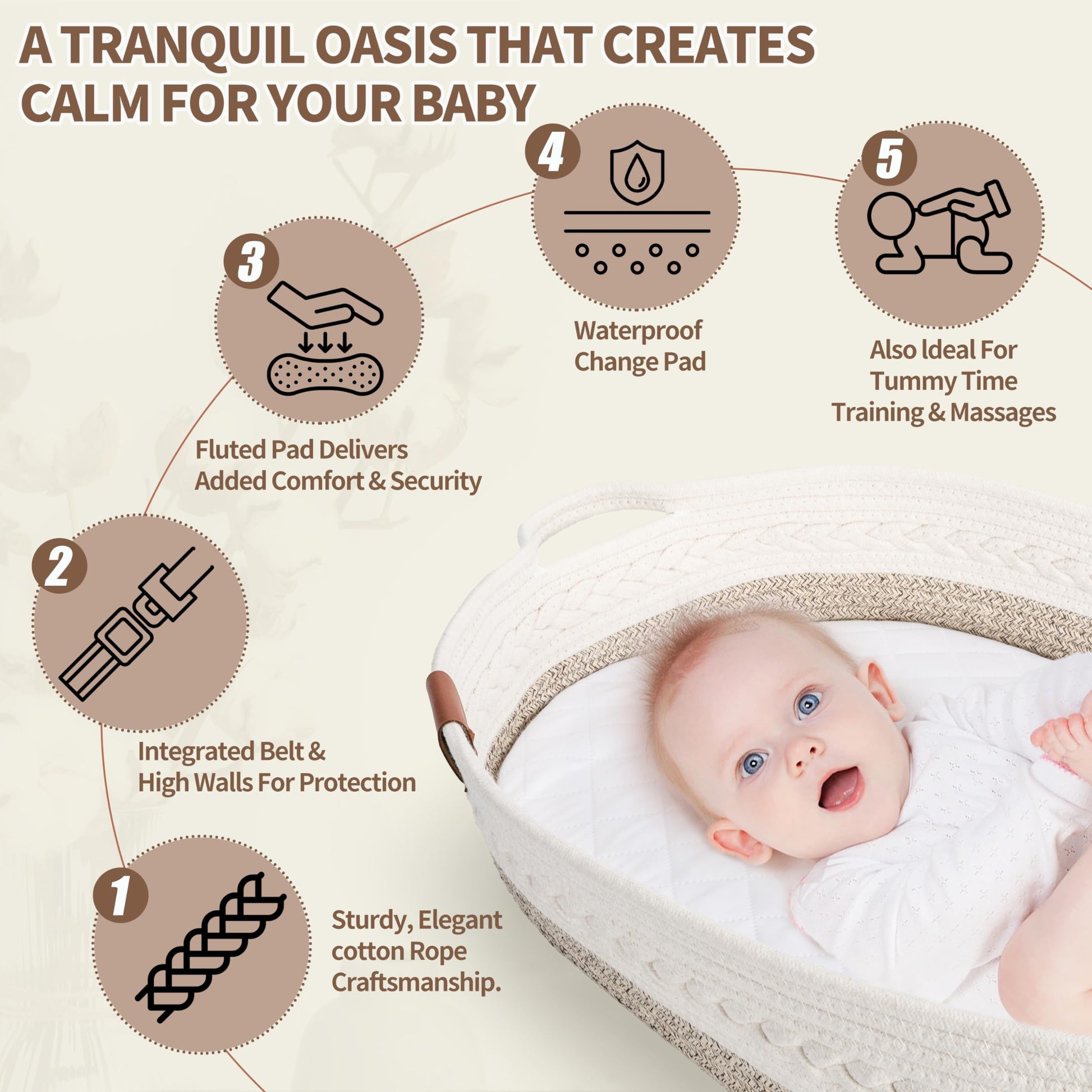 - Q: What materials are used in the SwiftSleep Baby Changing Basket? A: The SwiftSleep Baby Changing Basket is made from high-quality cotton rope, ensuring durability and a soft touch for your baby.