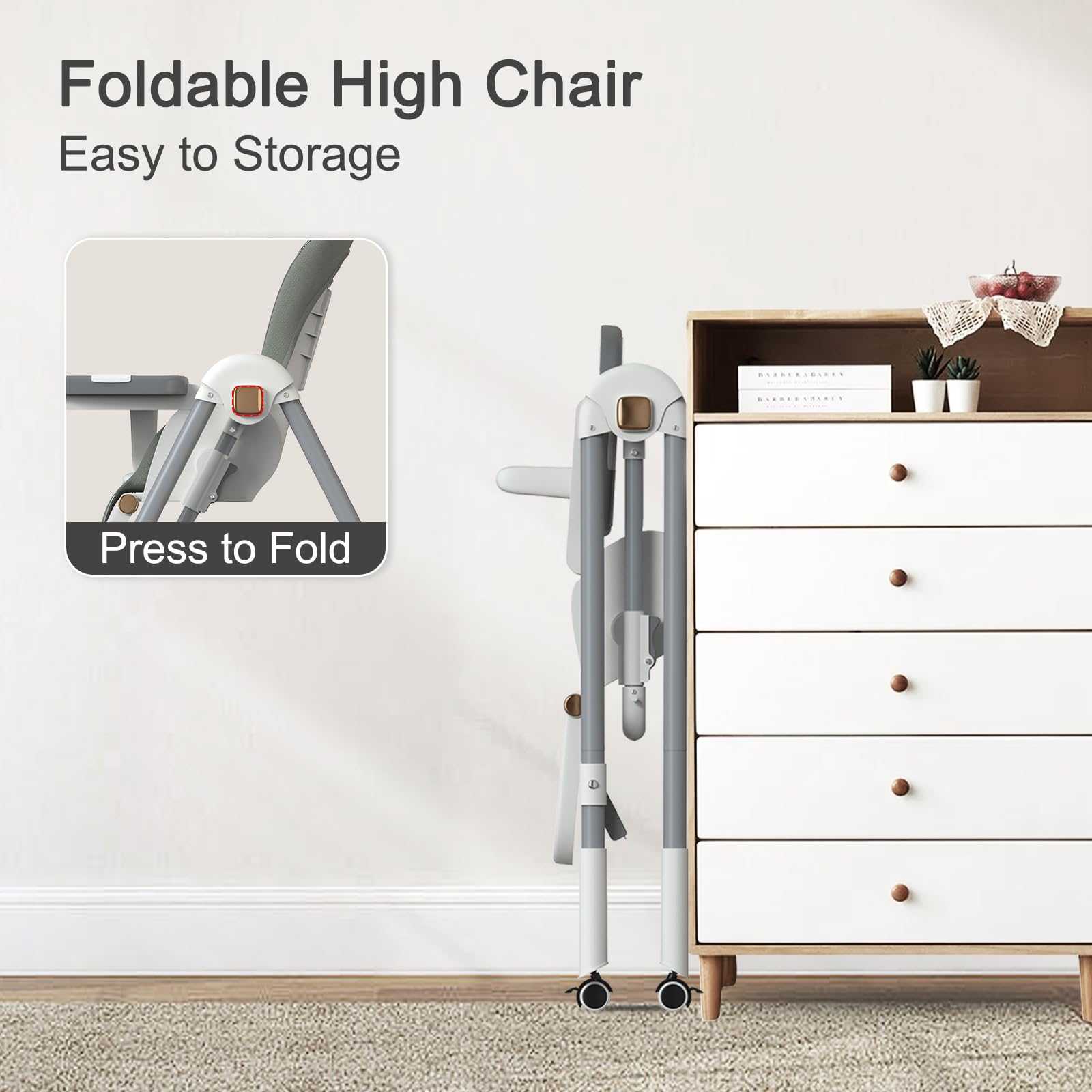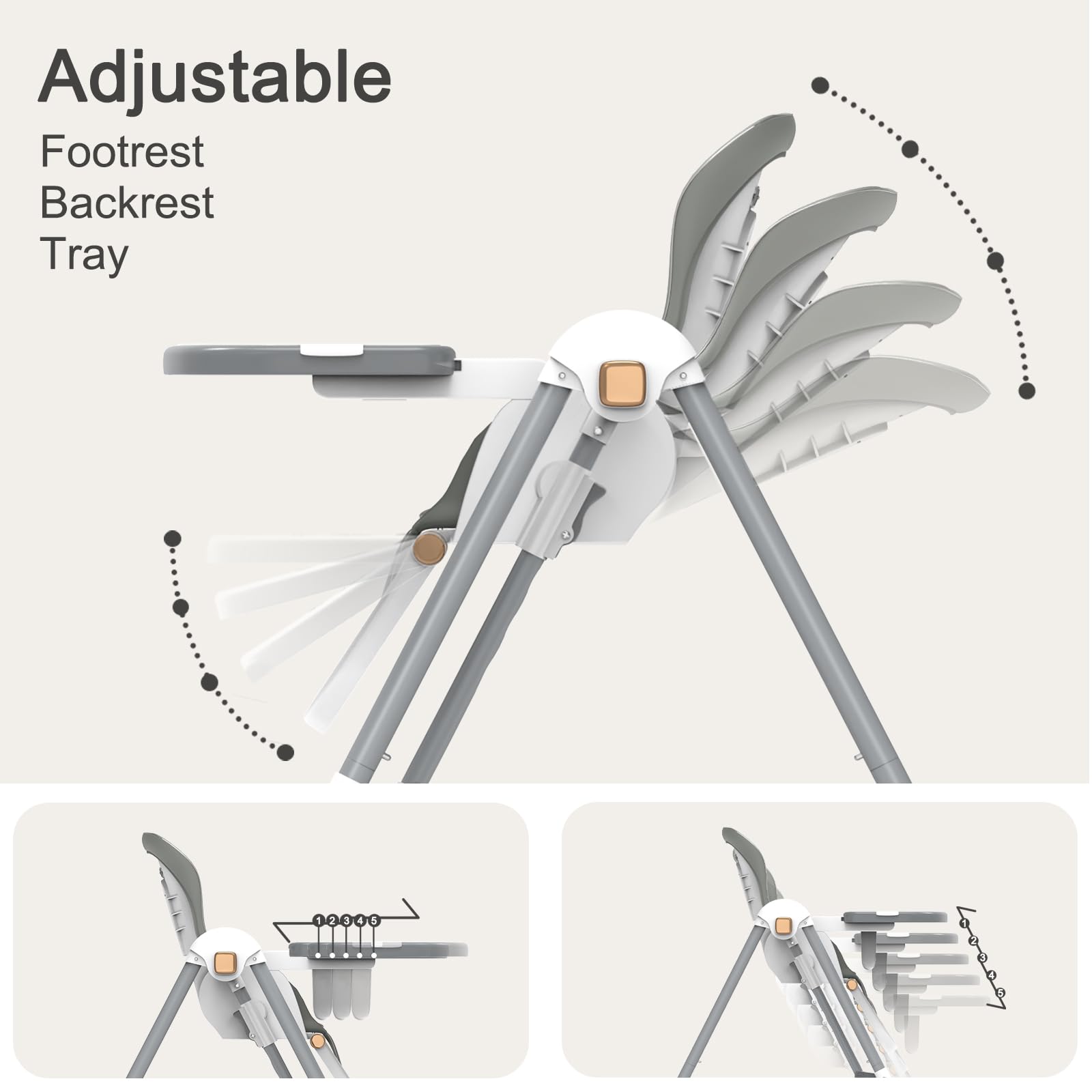 - Q: How many height and recline positions does the high chair offer? A: The high chair offers 7 adjustable height positions and 4 recline positions to ensure a comfortable fit for your child at every stage of growth.