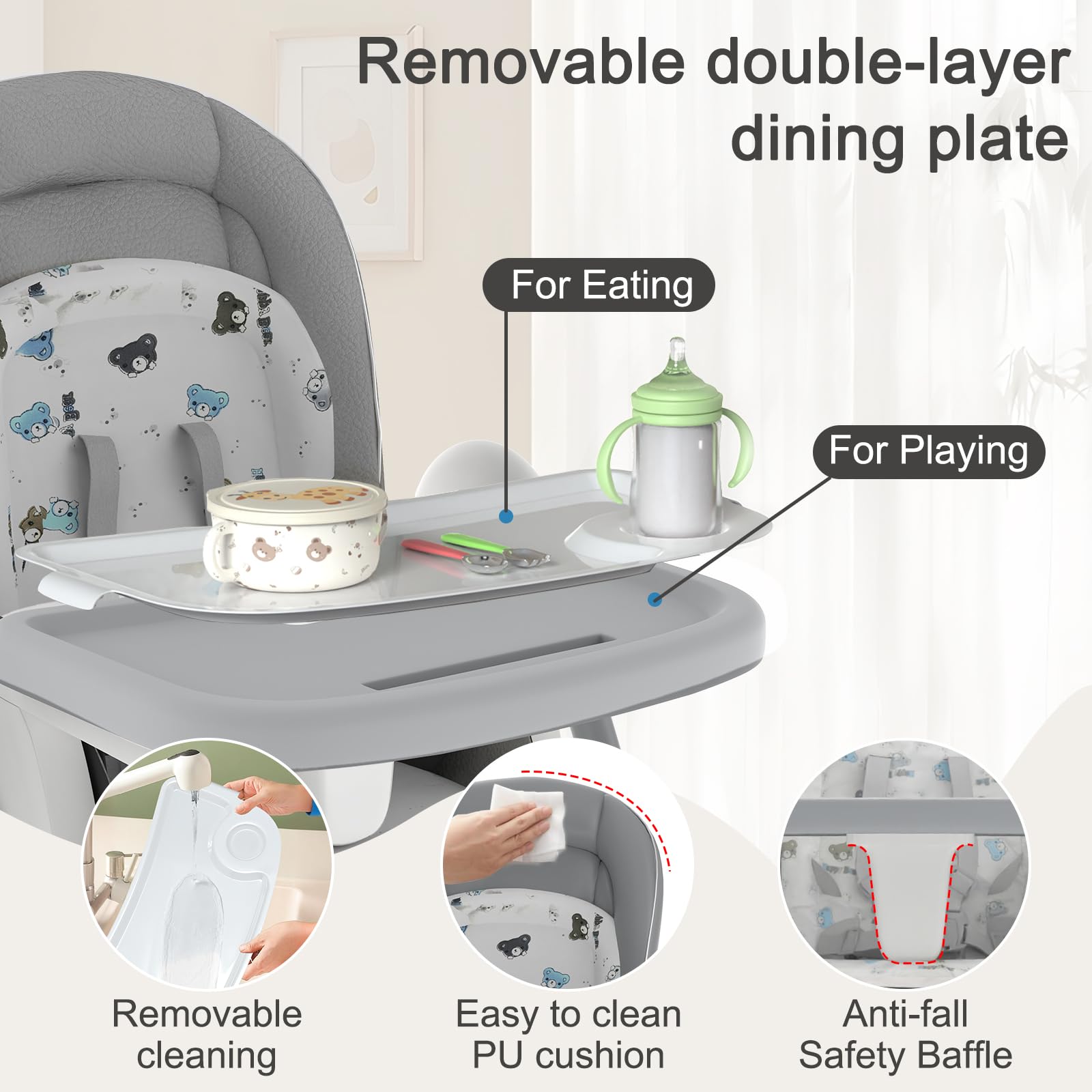- Q: What materials is the high chair made from? A: The high chair is made from non-toxic materials that are phthalate-free, BPA-free, and non-allergenic, ensuring safety for your child.