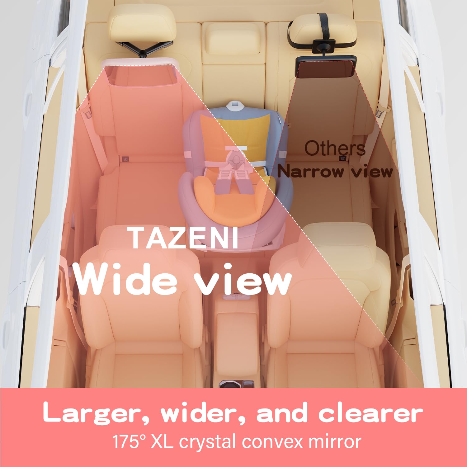 Tazeni Car Mirror For Baby - Hook Clip Design, Never Shake Car Seat Mirror, Rear Facing, Easy Install, Back Seat Crystal Clear V