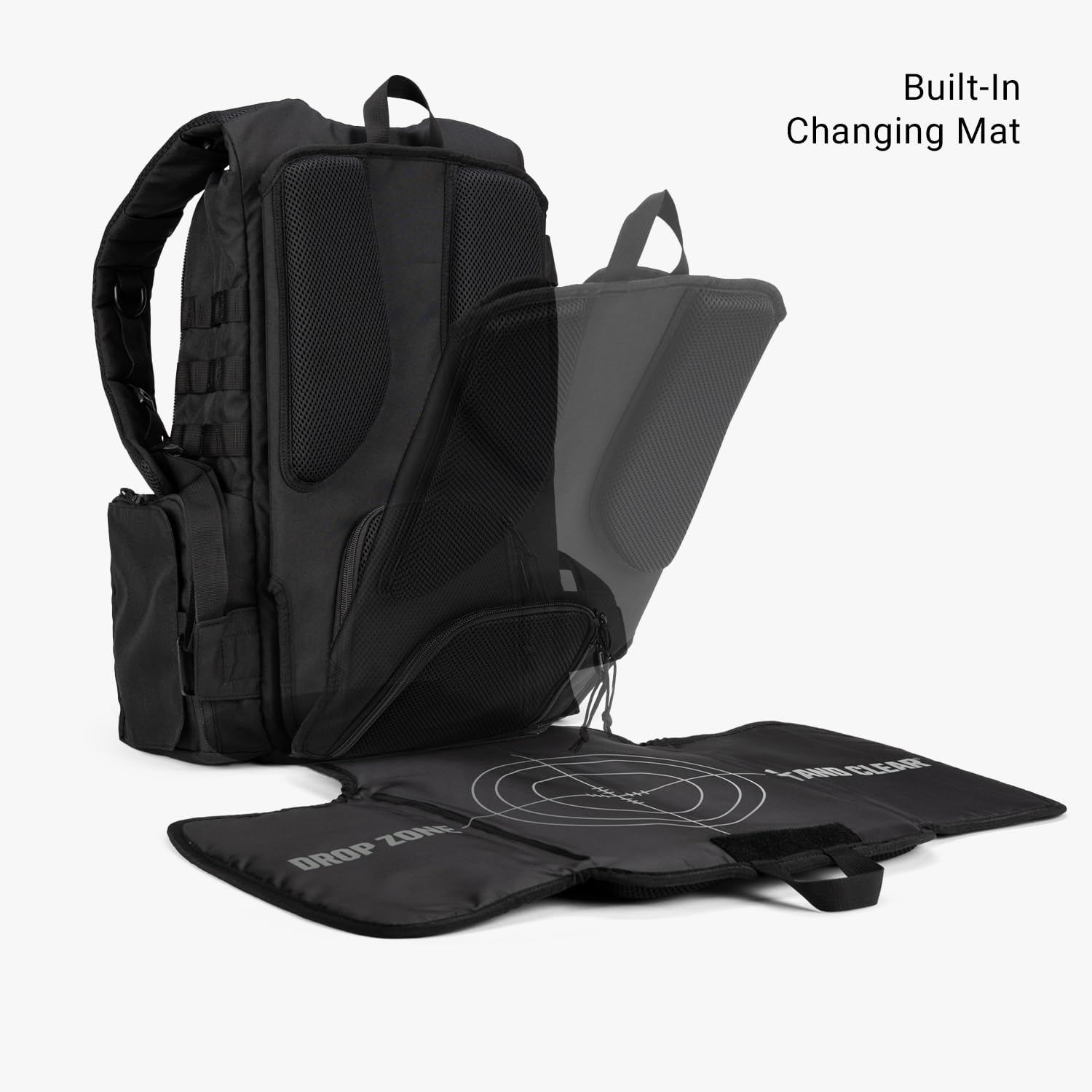 - Q: Does the diaper bag include a changing mat? A: Yes, the Tactical Baby Gear Daypack features a built-in, removable changing mat that measures 23 inches by 12 inches when open, allowing for convenient diaper changes on the go.