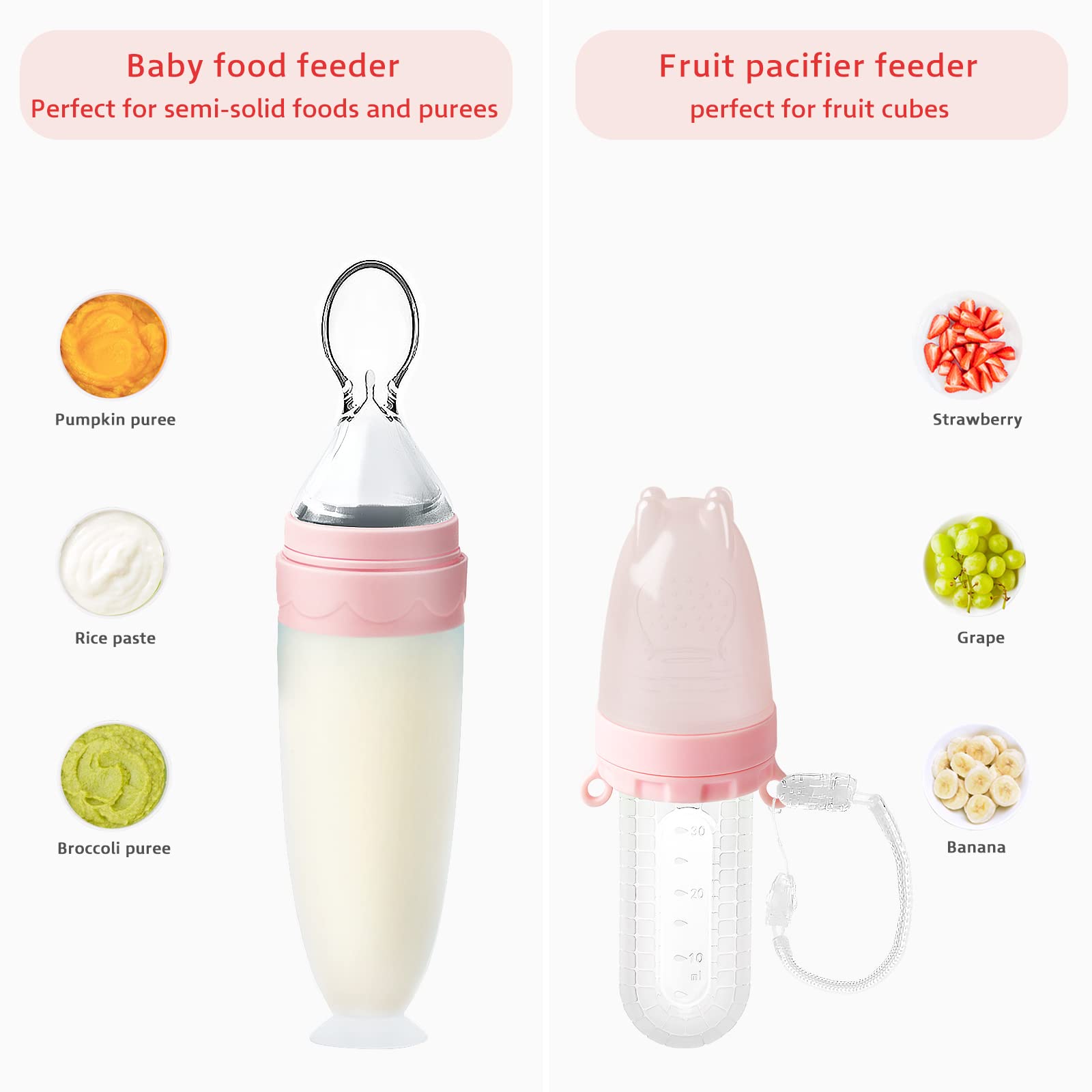- Q: What colors does the Termichy Baby Food Feeder Set come in? A: The Termichy Baby Food Feeder Set is available in a pink color option, which is designed to be appealing for infants.