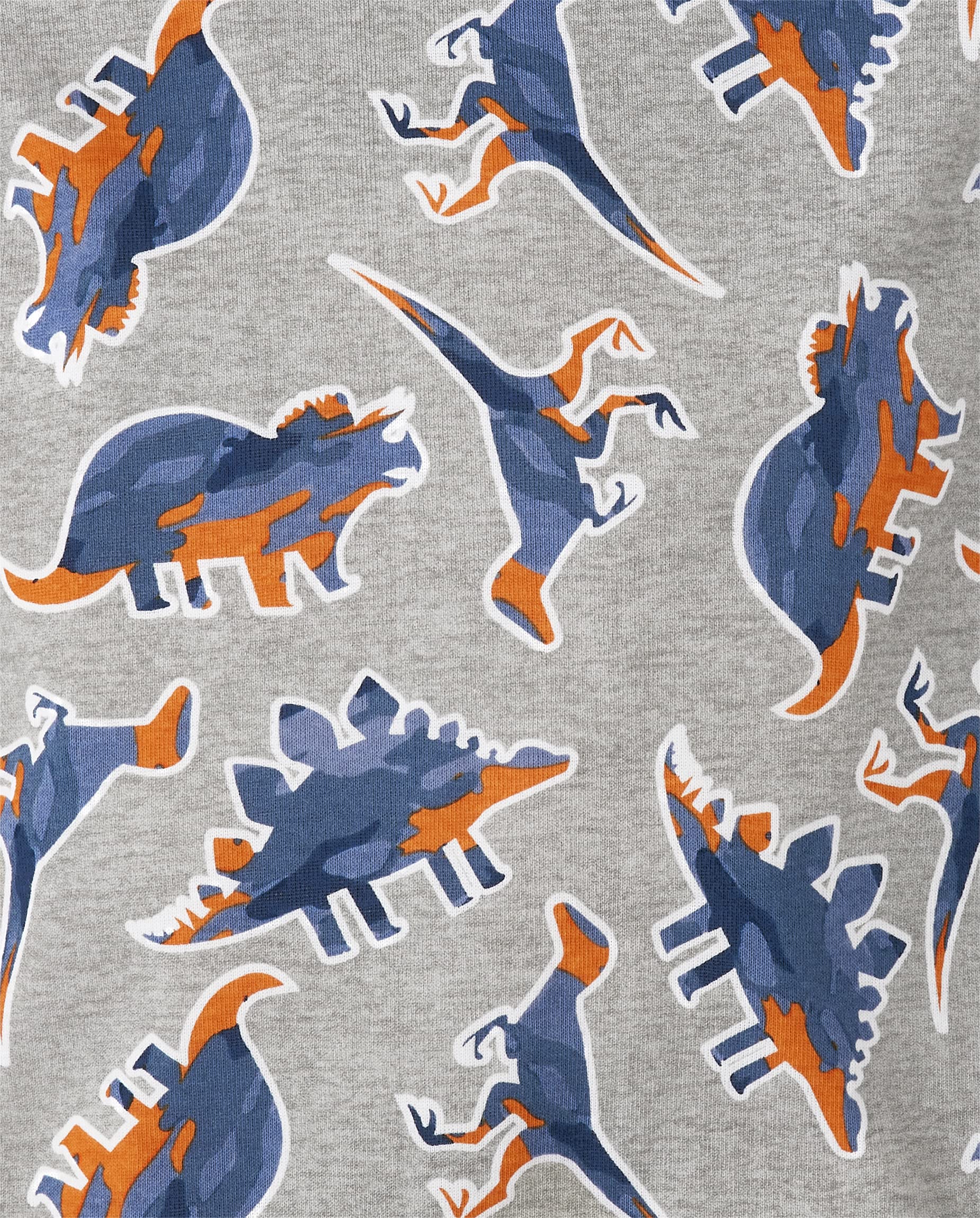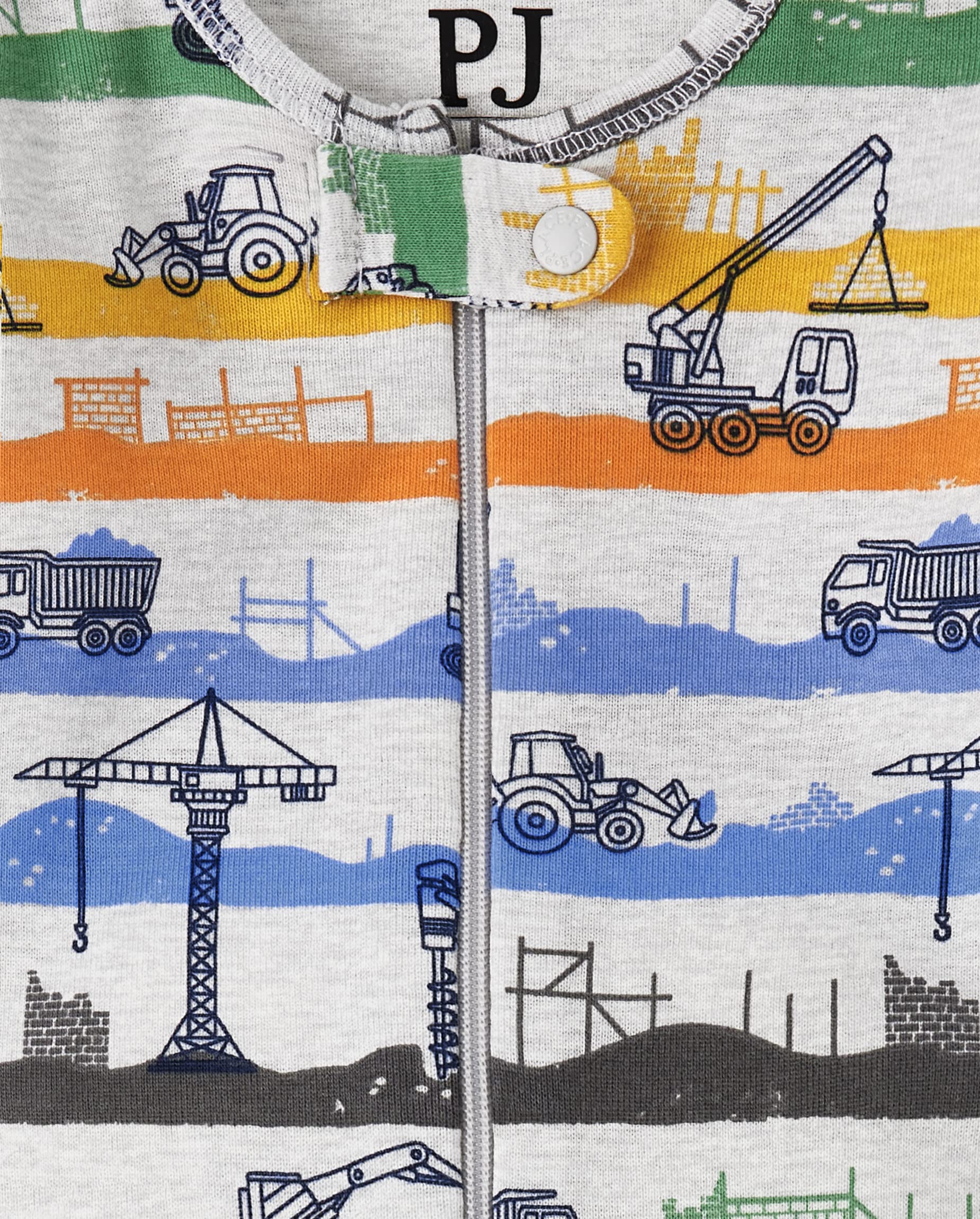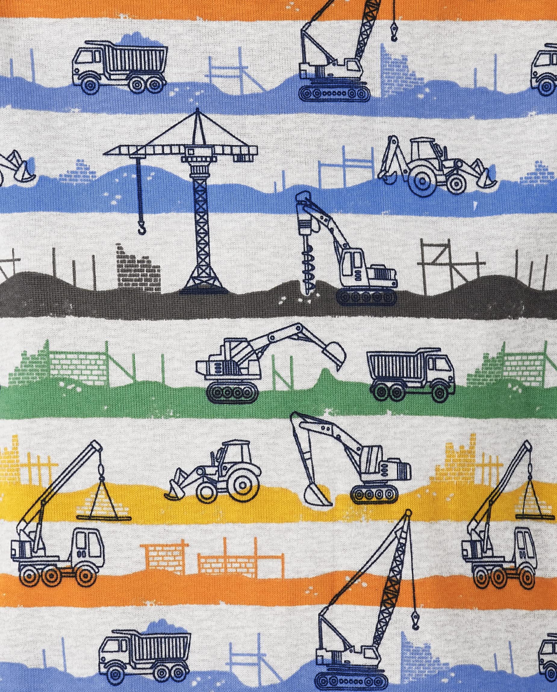 • Q: What designs are included in the 2-pack? A: The 2-pack includes one pajama with an allover dino print and another with an allover construction vehicle print.