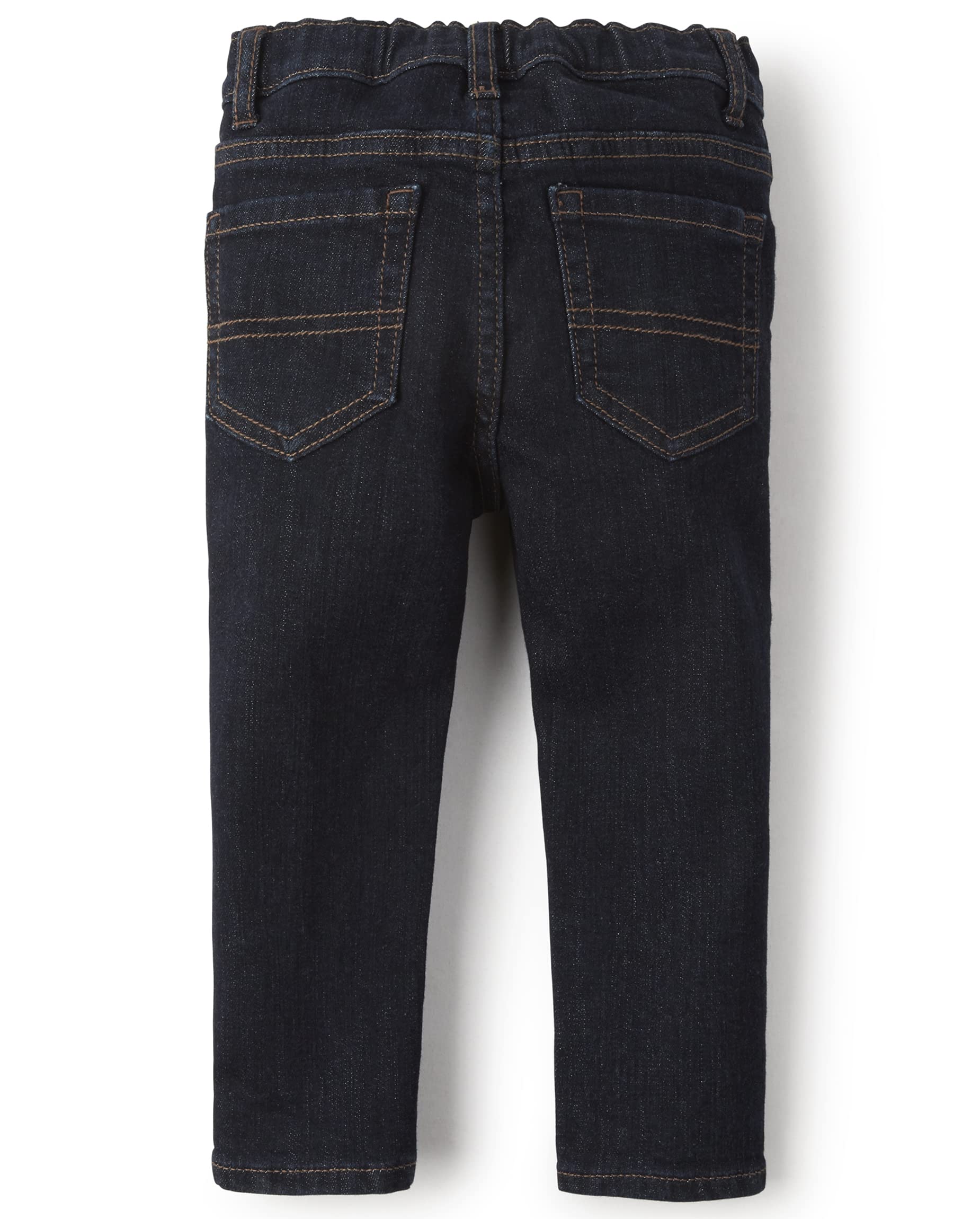 - Q: What material are The Children's Place Baby Boys and Toddler Boys Stretch Skinny Jeans made from? A: These jeans are made from a cotton blend that includes a little stretch for comfortable wear throughout the day.