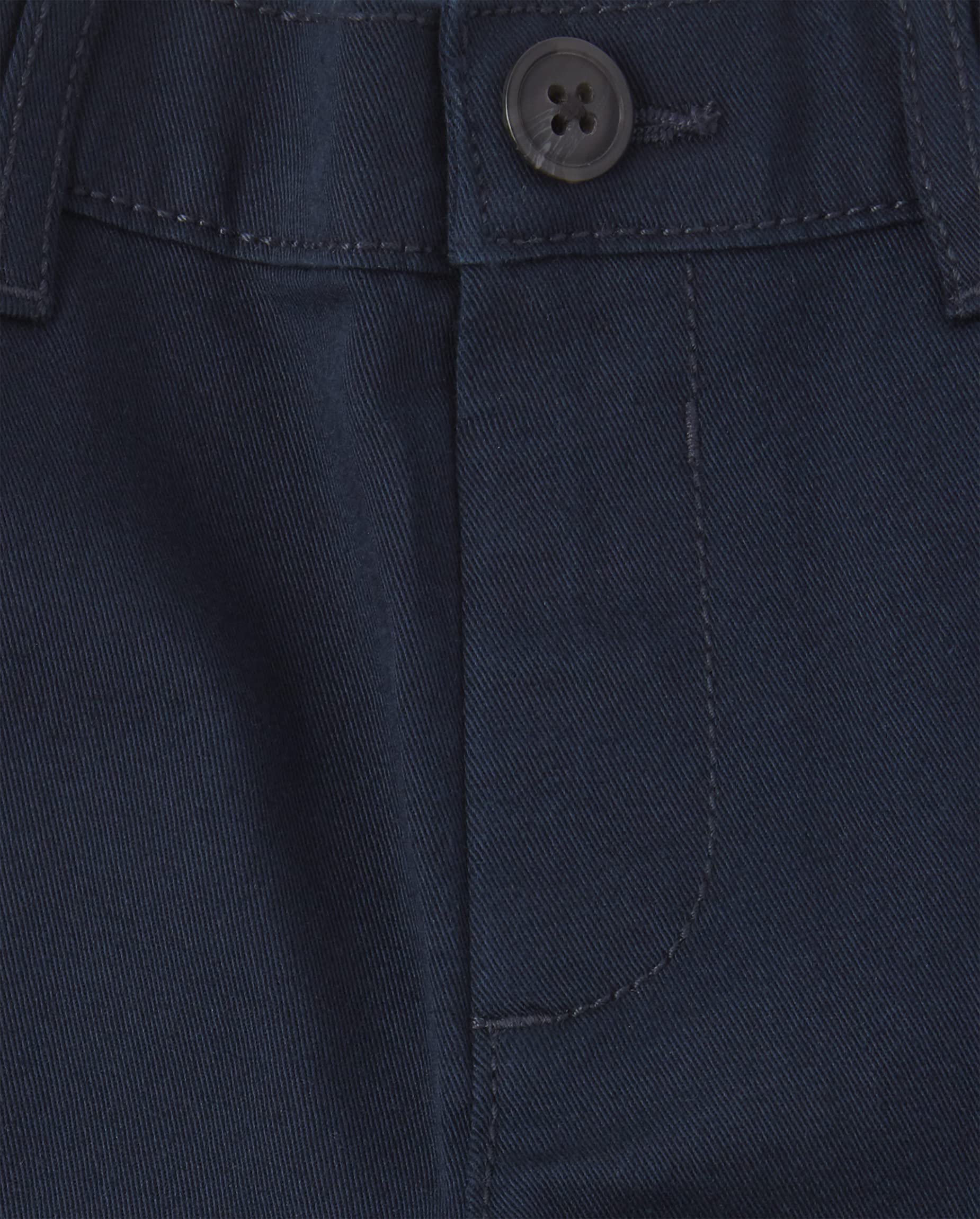 - Q: What colors are available in this pack? A: This pack features chino pants in Flax and New Navy colors, providing a nice mix for your child's outfits.