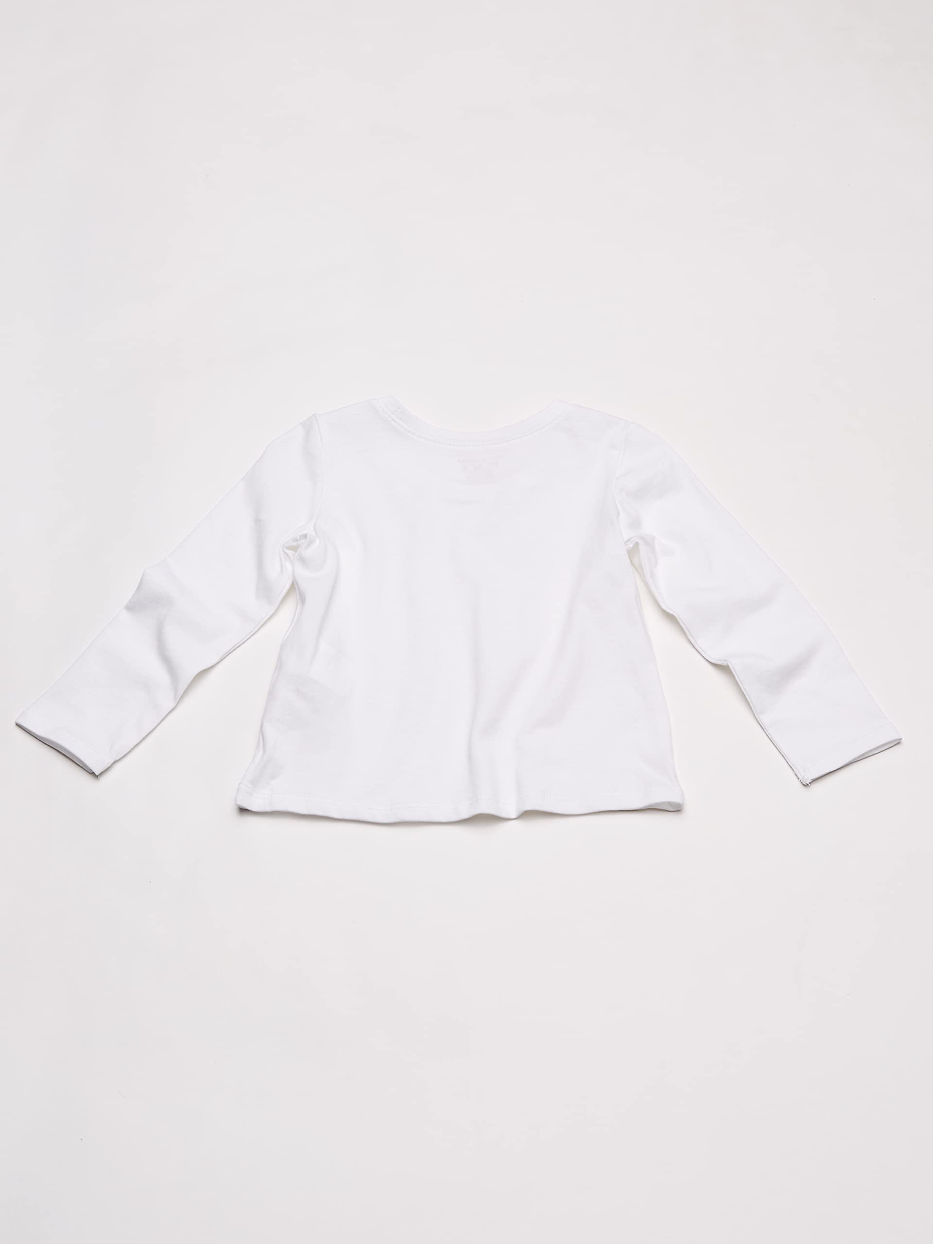 • Q: What features does this t-shirt have? A: The t-shirt is styled with long sleeves and a classic crew neck, making it a versatile addition to your child's wardrobe.
