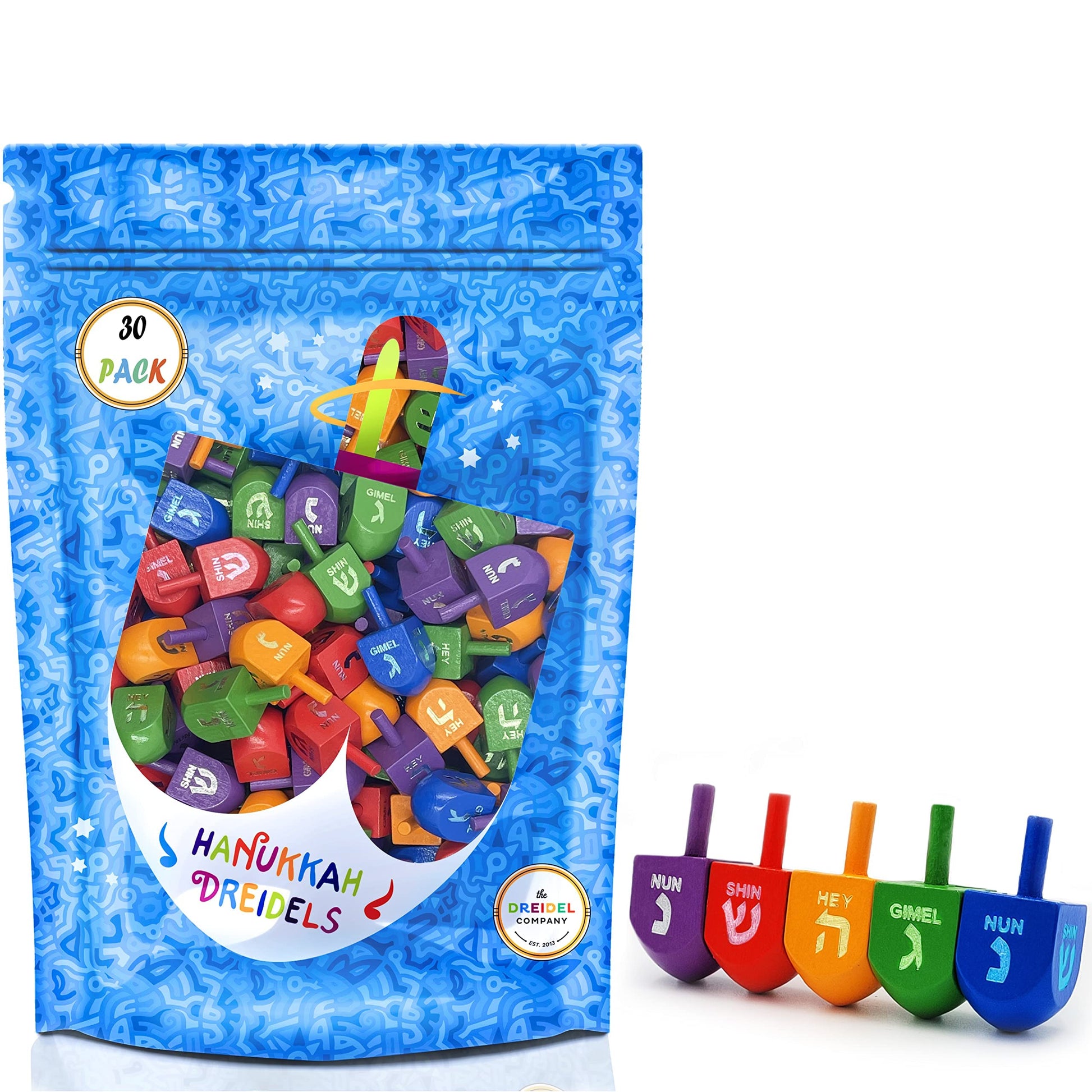 - Q: How many dreidels are included in a pack? A: The product comes in various pack sizes, including 4, 10, 30, or 100 dreidels.