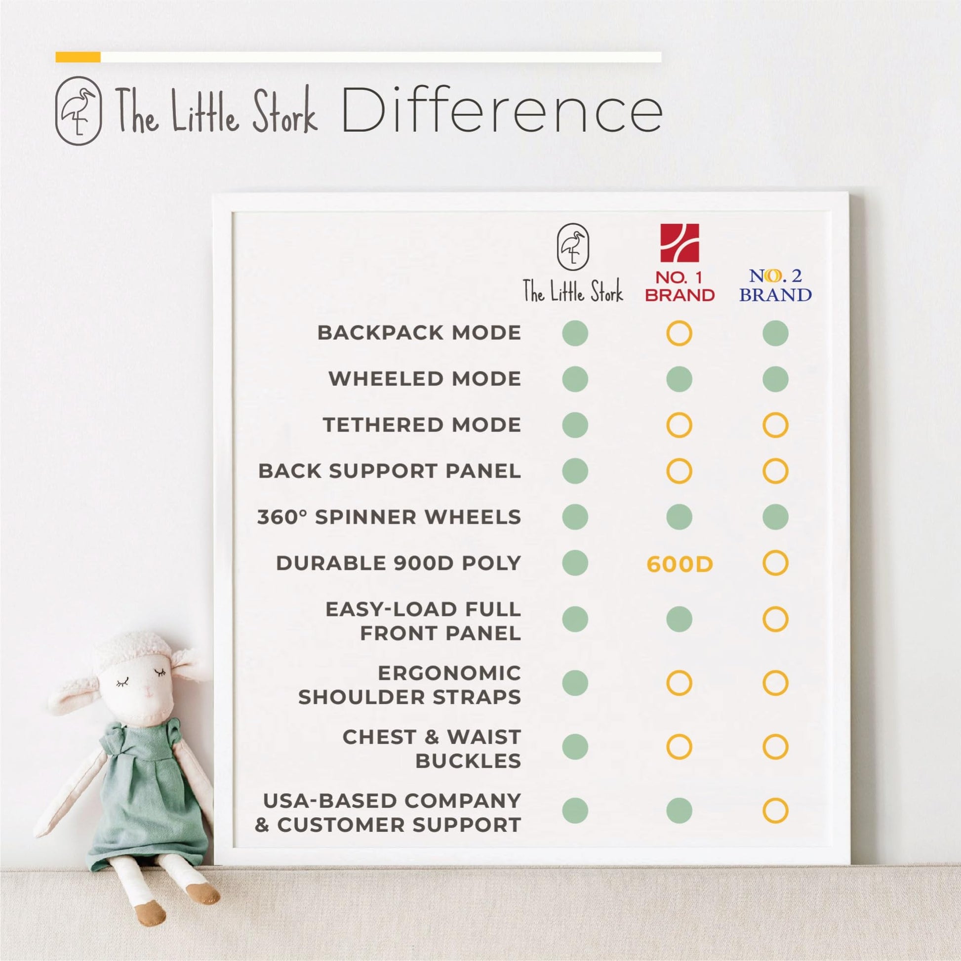 - Q: How does the rolling feature work on this travel bag? A: The Little Stork Car Seat Travel Bag has a built-in wheel system that allows it to be rolled like a suitcase, providing ease of movement at the airport.