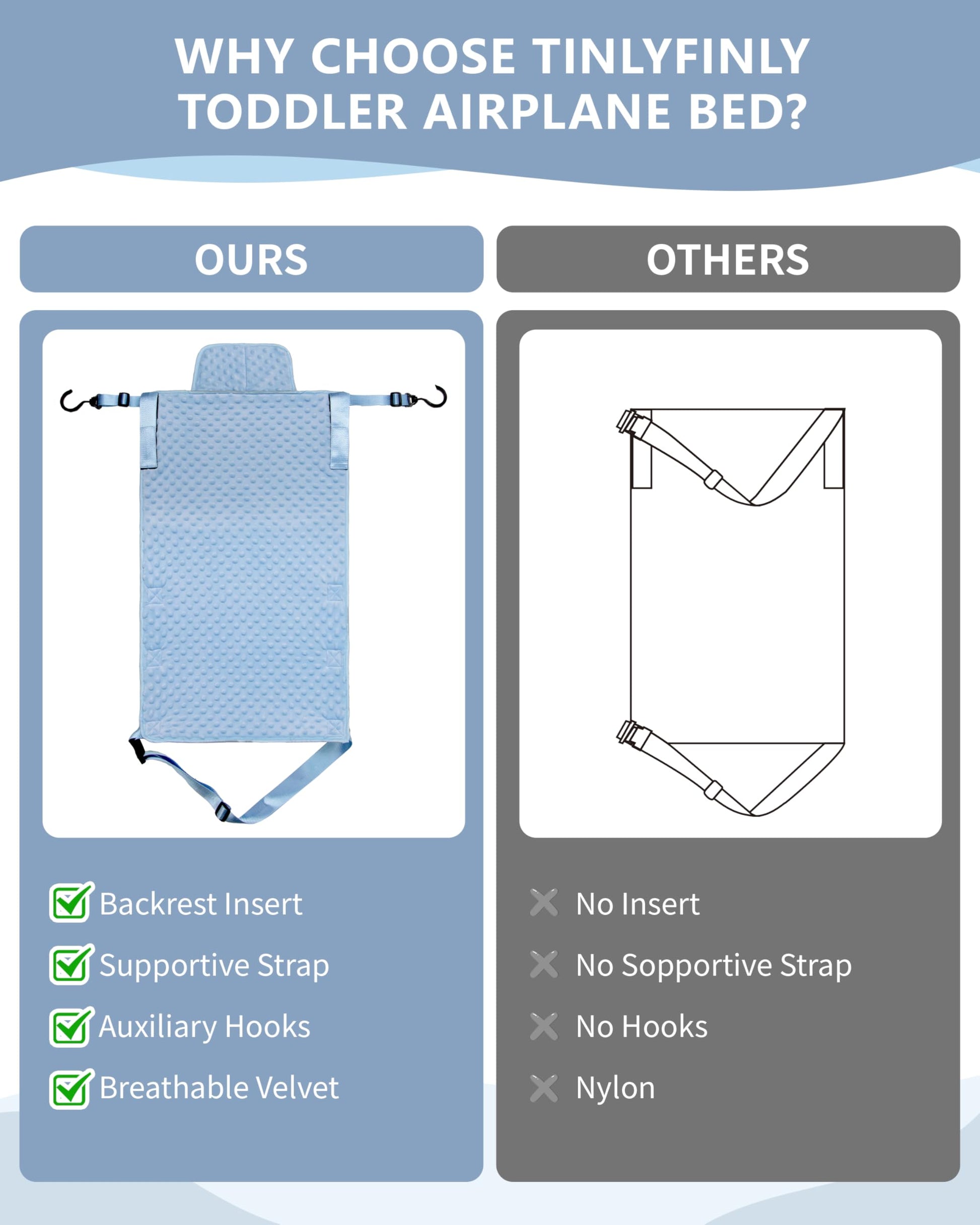 - Q: How does the toddler airplane bed help during flights? A: The toddler airplane bed acts as a seat extender, providing a comfortable footrest and creating a more spacious area for children to rest, play, or engage in activities, helping alleviate discomfort during long flights.