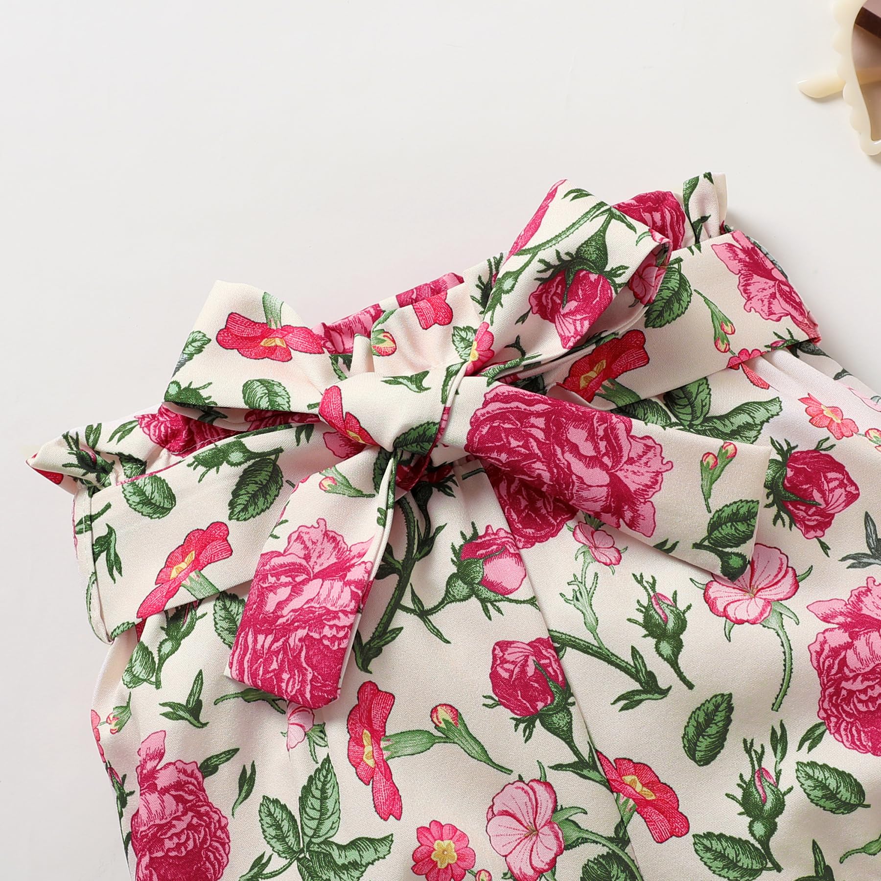 - Q: Does the set include any accessories? A: Yes, the set includes a ruffle sleeveless romper, floral shorts, and a cute adjustable headband.