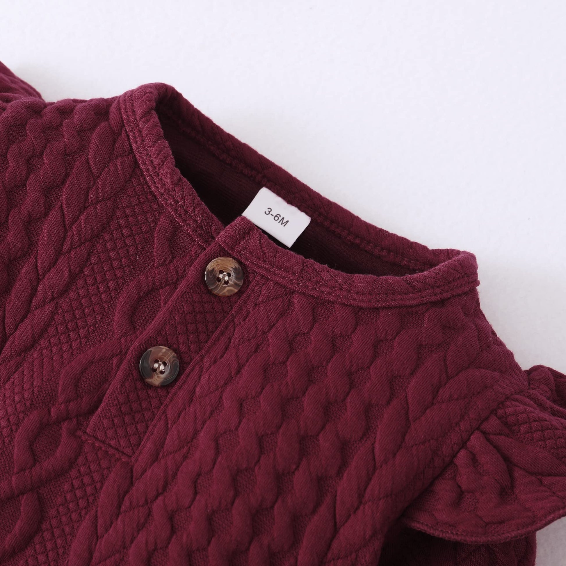- Q: What colors are available for the Mioglrie Baby Girl Clothes? A: The outfit is primarily available in a maroon color, which is appealing for baby girls.