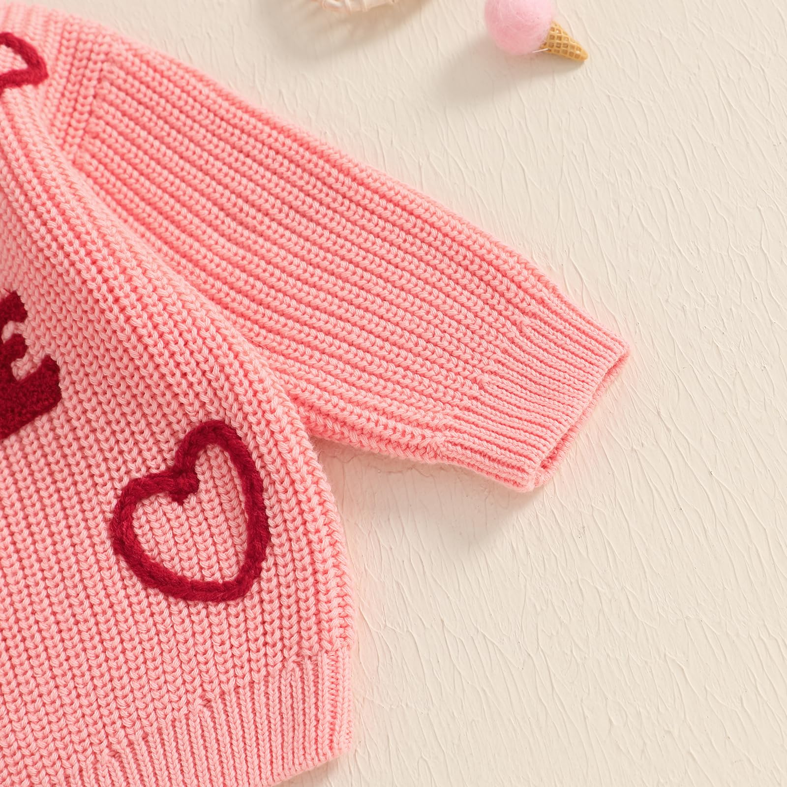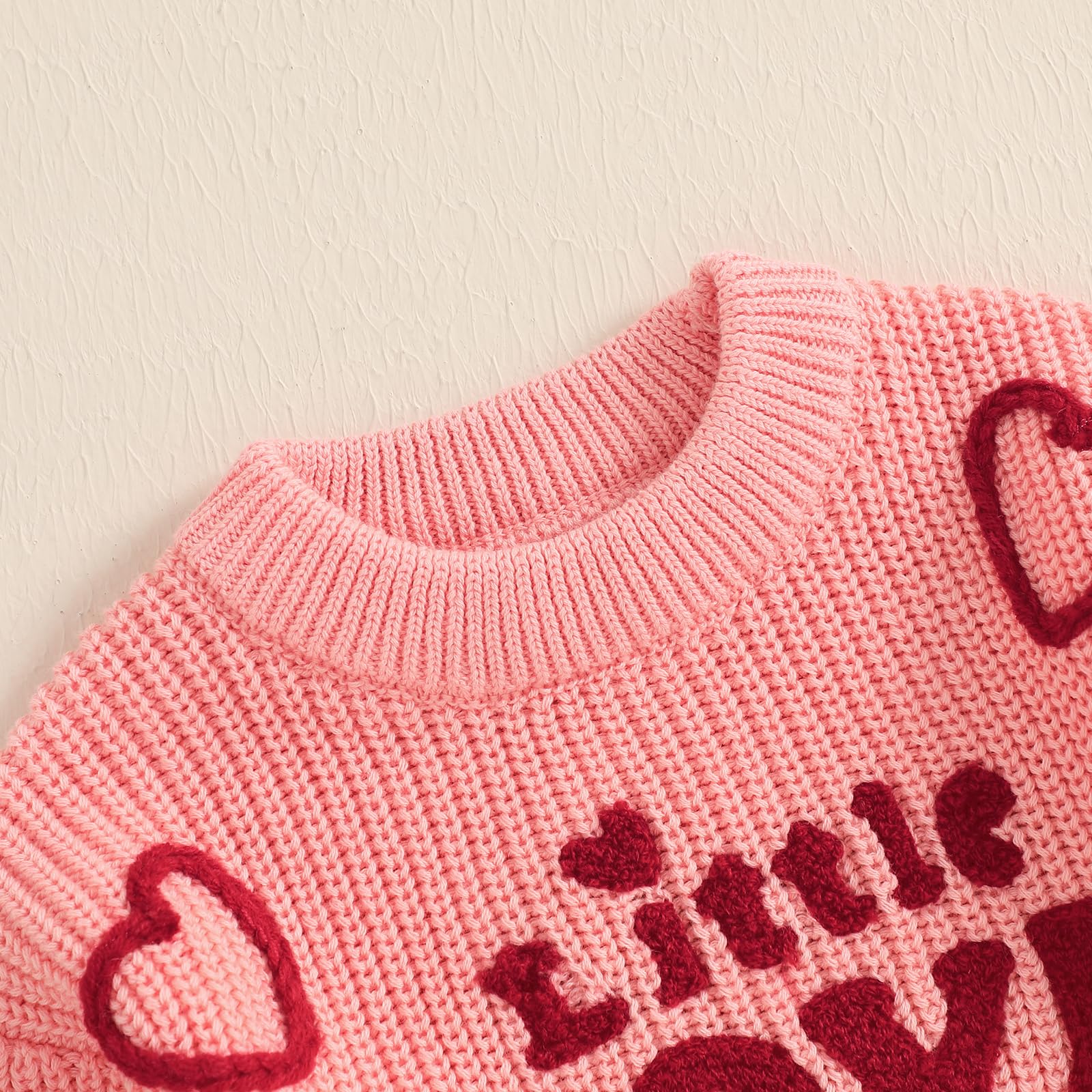 - Q: Does the sweater have any special design features? A: Yes, it features a 'Little Love' embroidery print, a slightly gathered hem, and a cute heart design.