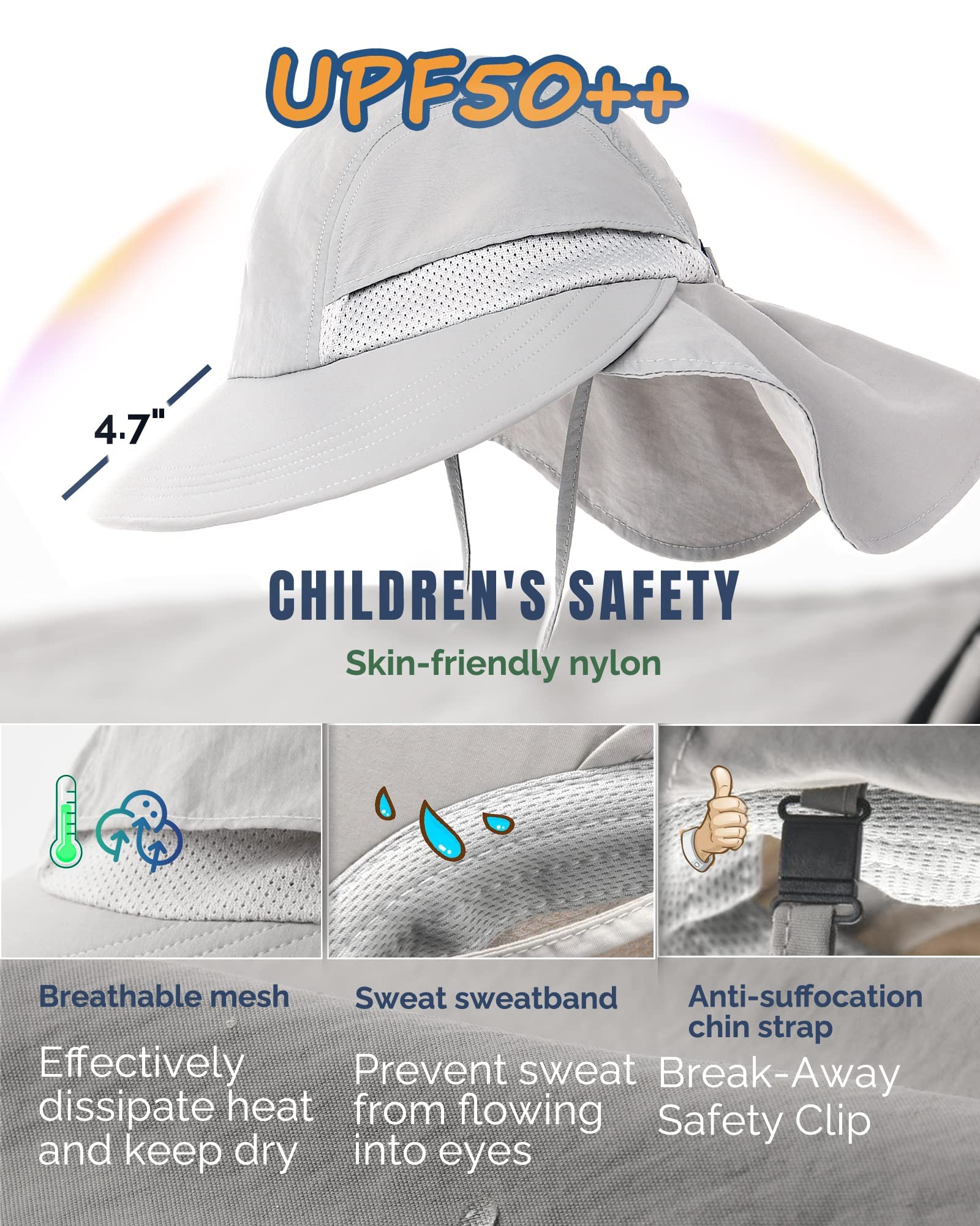 - Q: Is the hat designed for effective sun protection? A: Yes, this sun hat offers UPF 50+ protection, blocking 99% of harmful UV rays, and features a 3.5-inch brim and extra back coverage for added safety for your child's face, ears, and neck.