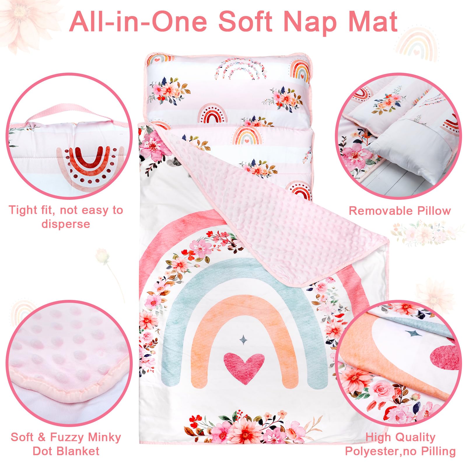 - Q: Is the pillow removable and washable? A: Yes, the nap mat comes with a removable plush pillow that can be easily taken off for washing.