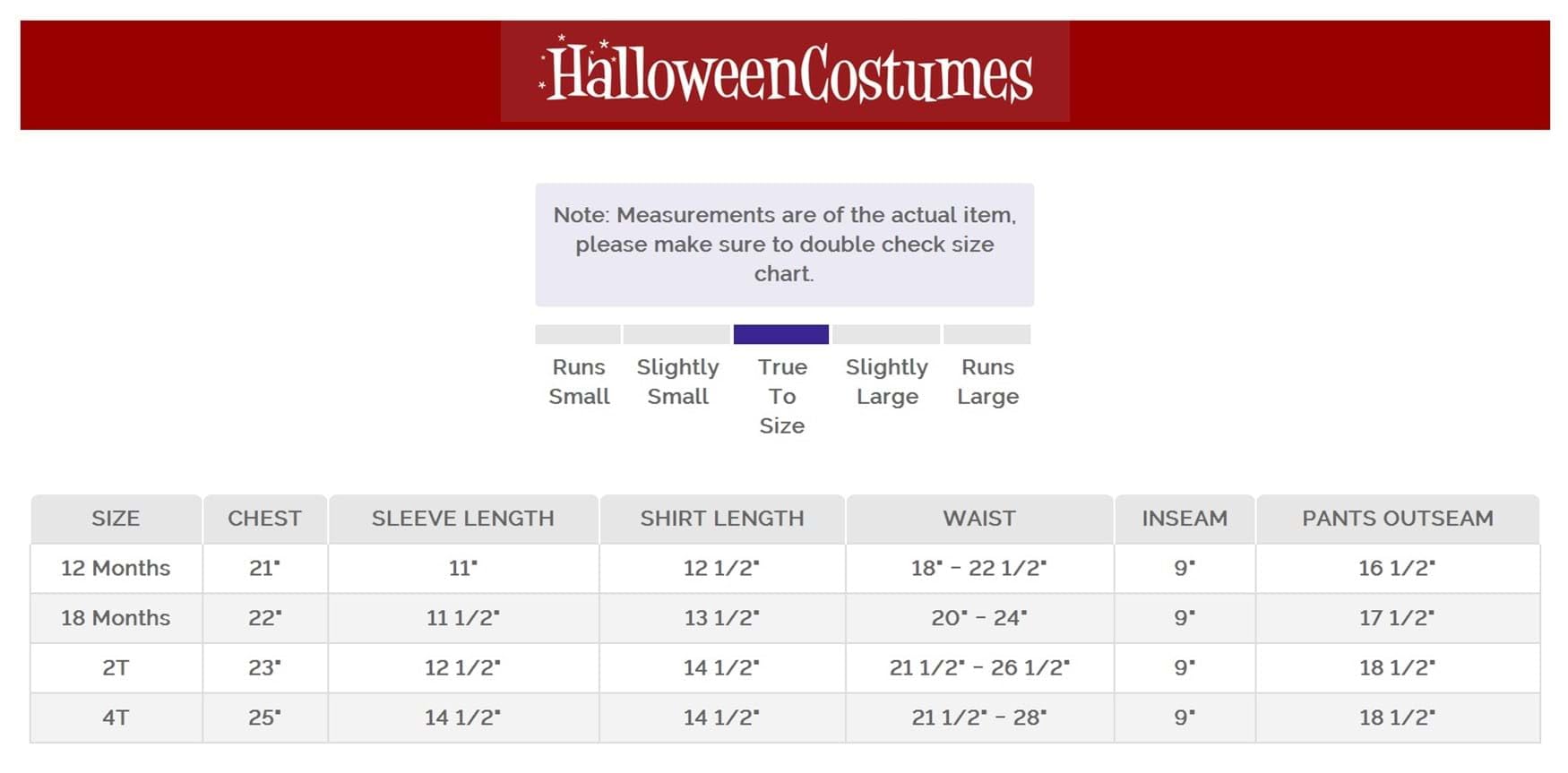 - Q: What sizes are available for the Toddler Oompa Loompa Costume? A: The Toddler Oompa Loompa Costume is available in sizes ranging from 12 months to 4T, ensuring a perfect fit for your little one.