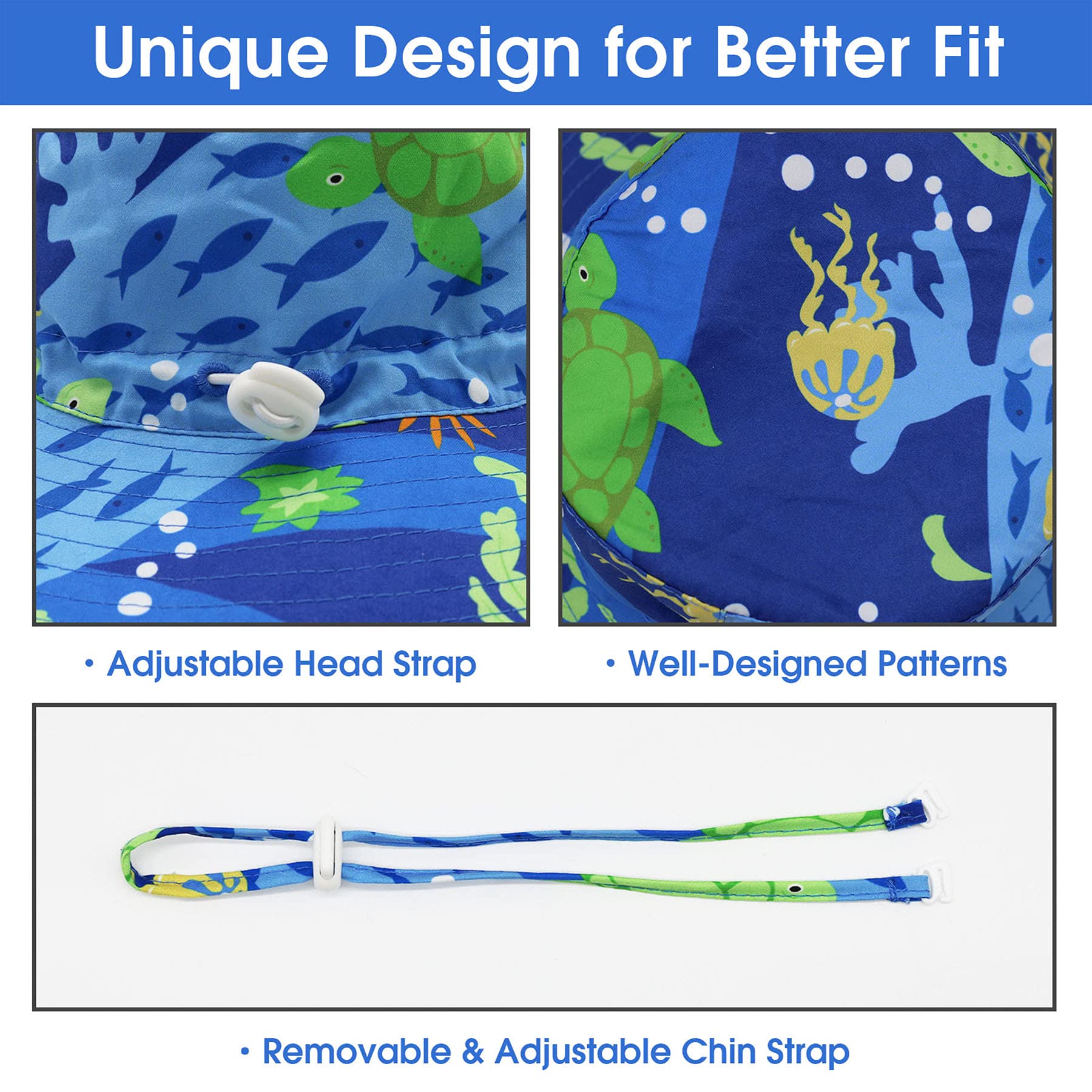 - Q: Is the Toddler Sun Hat adjustable? A: Yes, the Toddler Sun Hat features an adjustable head strap that allows for a customized fit as your baby grows. Additionally, it includes a removable chin strap to keep the hat securely in place.