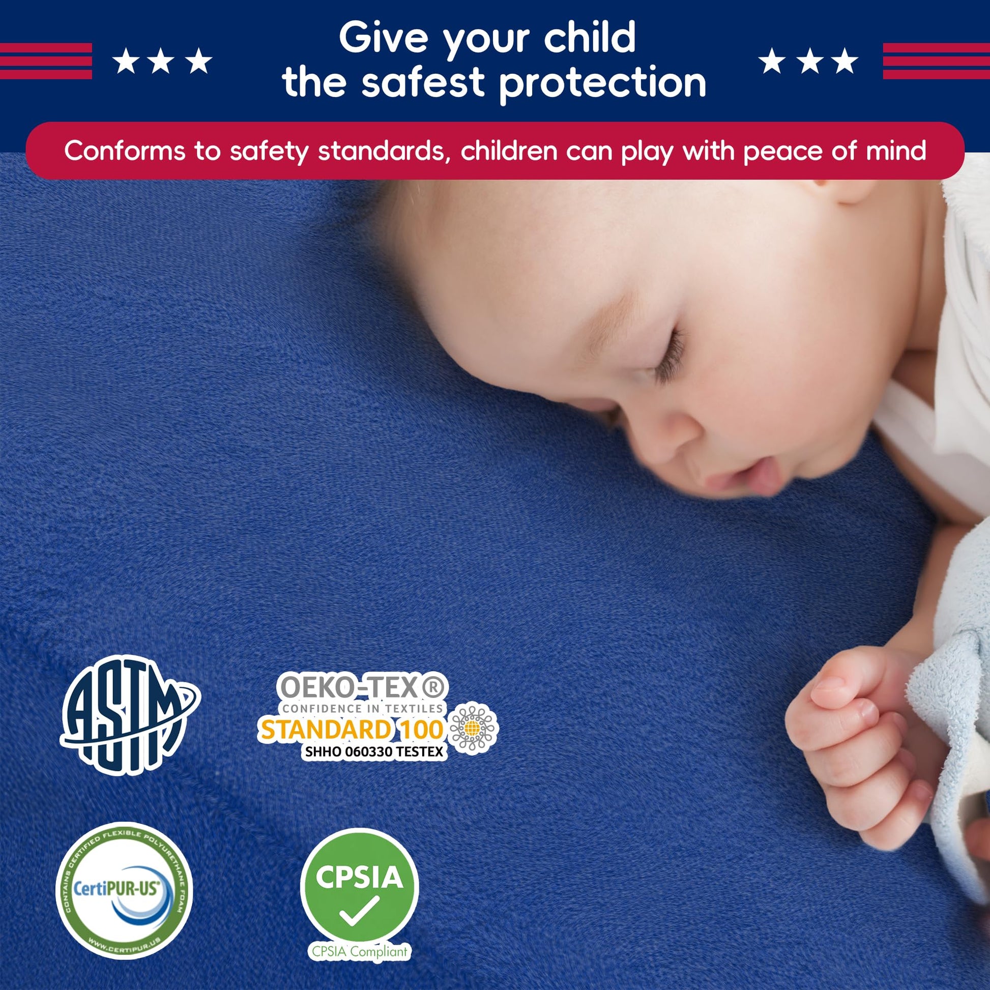 The TOLEAD foam climbing block set builds safe playtime skills for toddler. This 4-piece modular playset features soft, non-toxic CertiPUR foam cubes covered in premium miss fabric. Babies instictively crawl over, under and through the bright-colored blocks, developing motor coordination as they slide. The closed-cell high density foam structure bounces back after play without denting while cushioning the inevitable tumbles of early exploration. Smooth edges eliminate scratches. Machine washable fabric resists wear for long-lasting quality and retains its cushioning. These lightweight blocks stimulate self-directed movement for solo or social play at home, daycares and preschools. TOLEADs soft climbing cube set safely builds your baby's dexterity through fun!