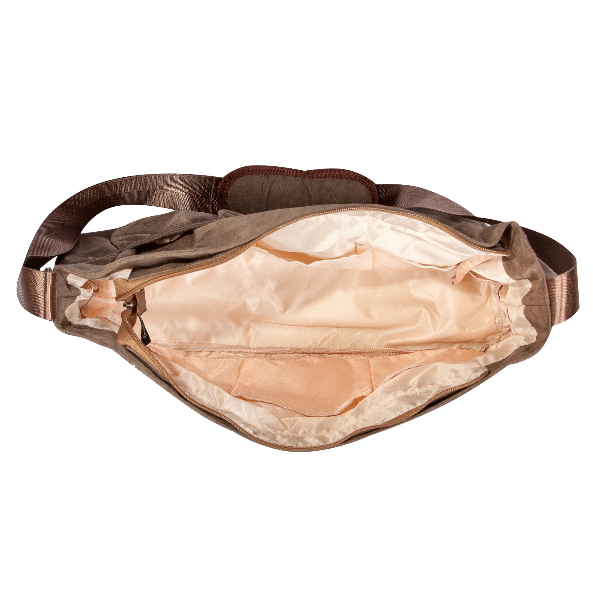 - Q: What materials is the diaper bag made of? A: The diaper bag is made from durable crinkle nylon with a tan nylon lining.