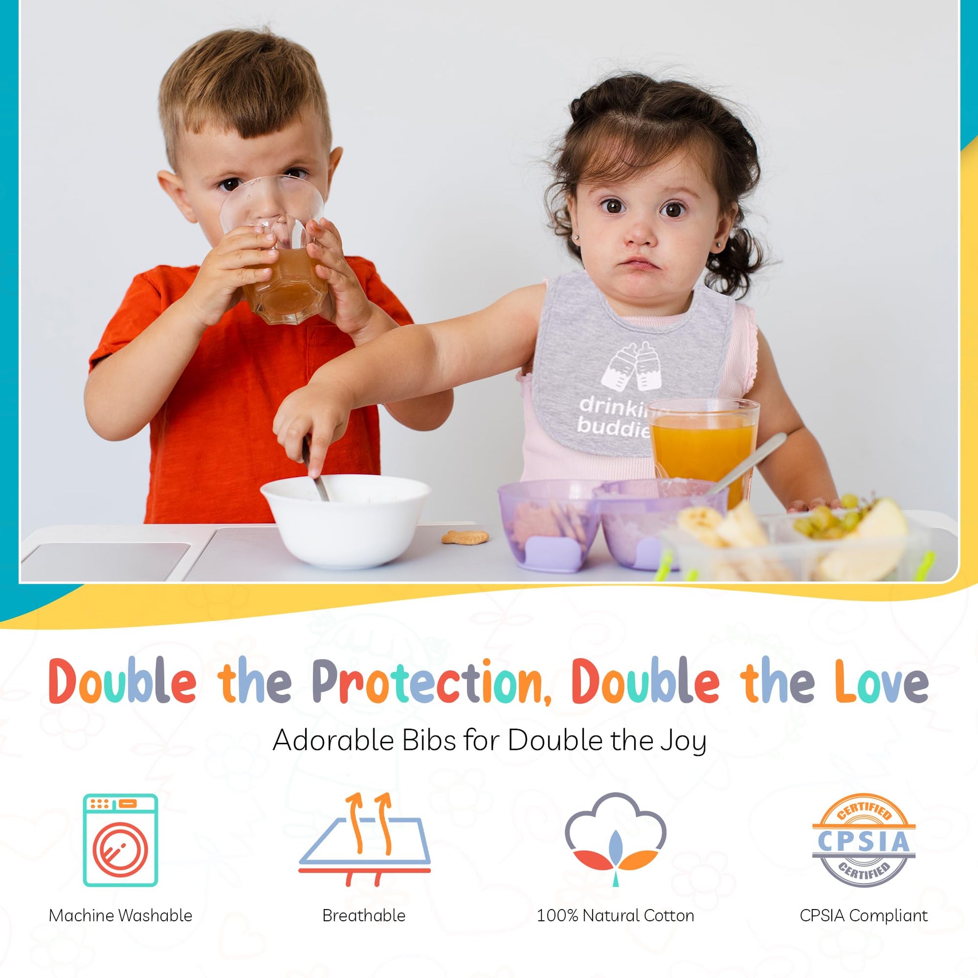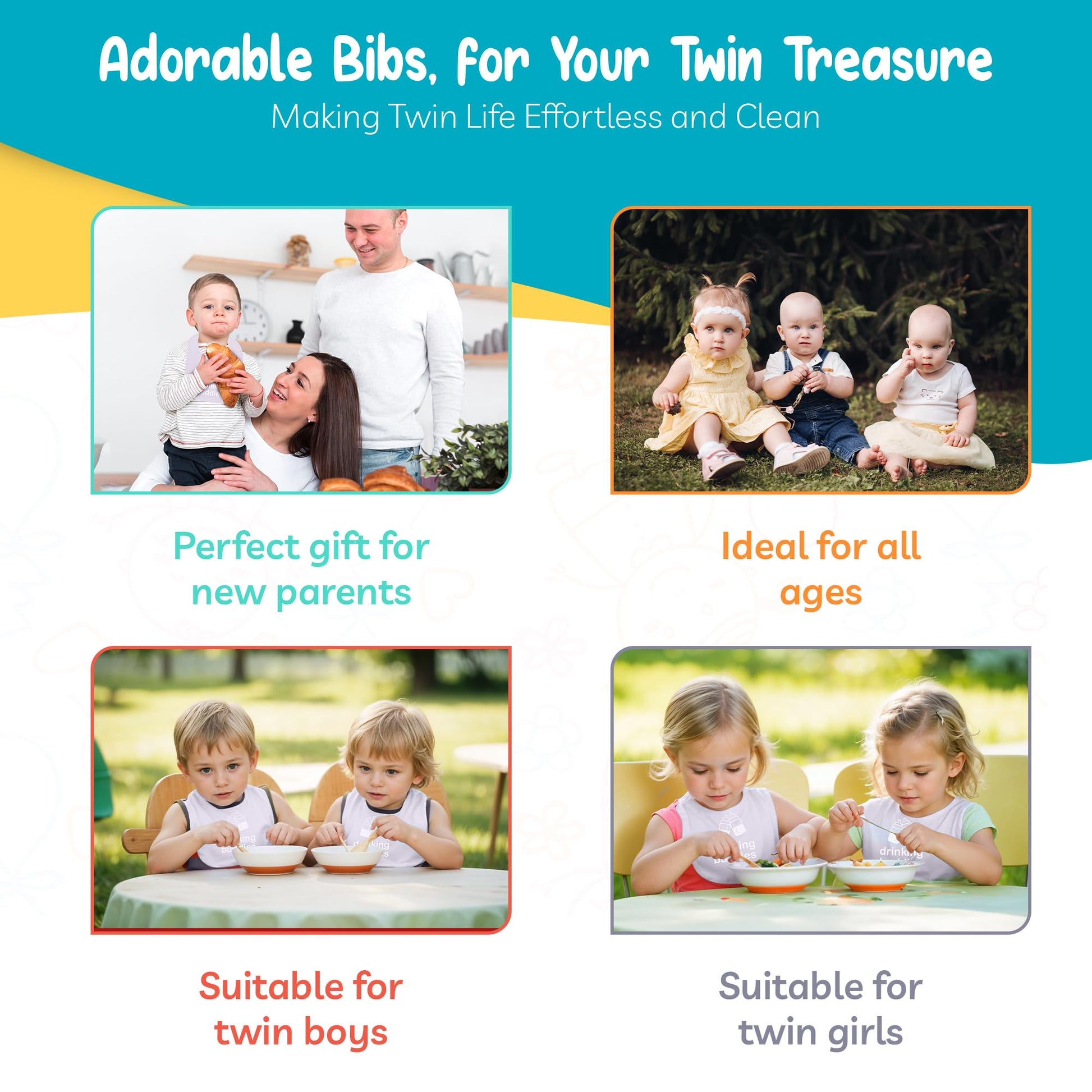 - Q: What makes these bibs a good gift for twin parents? A: The Drinking Buddies bibs are an adorable and practical gift for twin baby showers, pregnancy announcements, and are perfect for creating keepsake photos.
