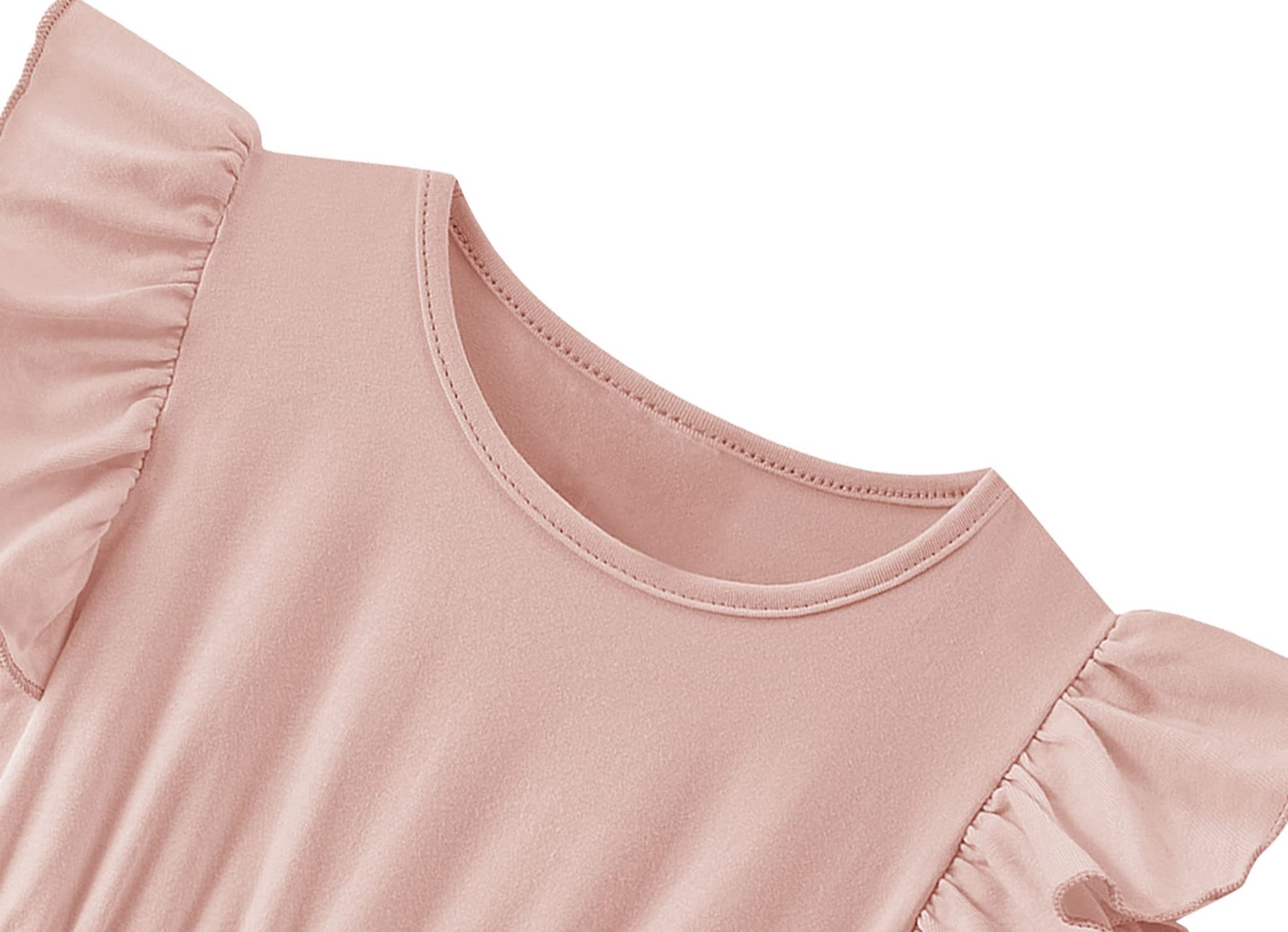 - Q: What are the unique design features of this dress? A: The dress features flutter and ruffle sleeves, giving it a cute and stylish look, along with two tulle tutu layers and one cotton layer for added volume.