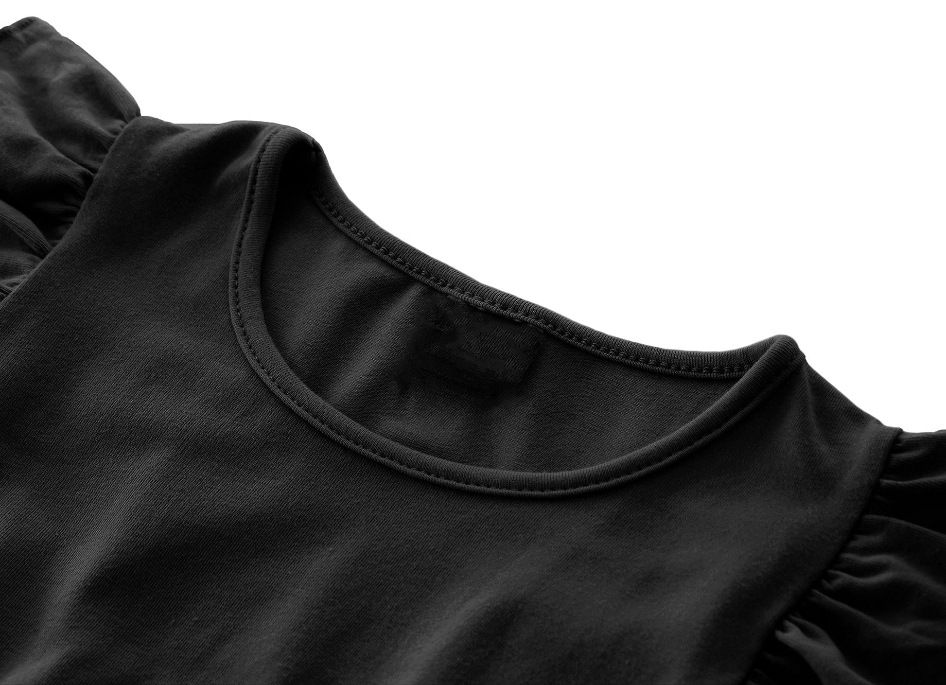 - Q: What type of design features does the dress have? A: The dress features flutter and ruffle sleeves, providing a unique and stylish look, along with two tulle tutu layers and one cotton layer.