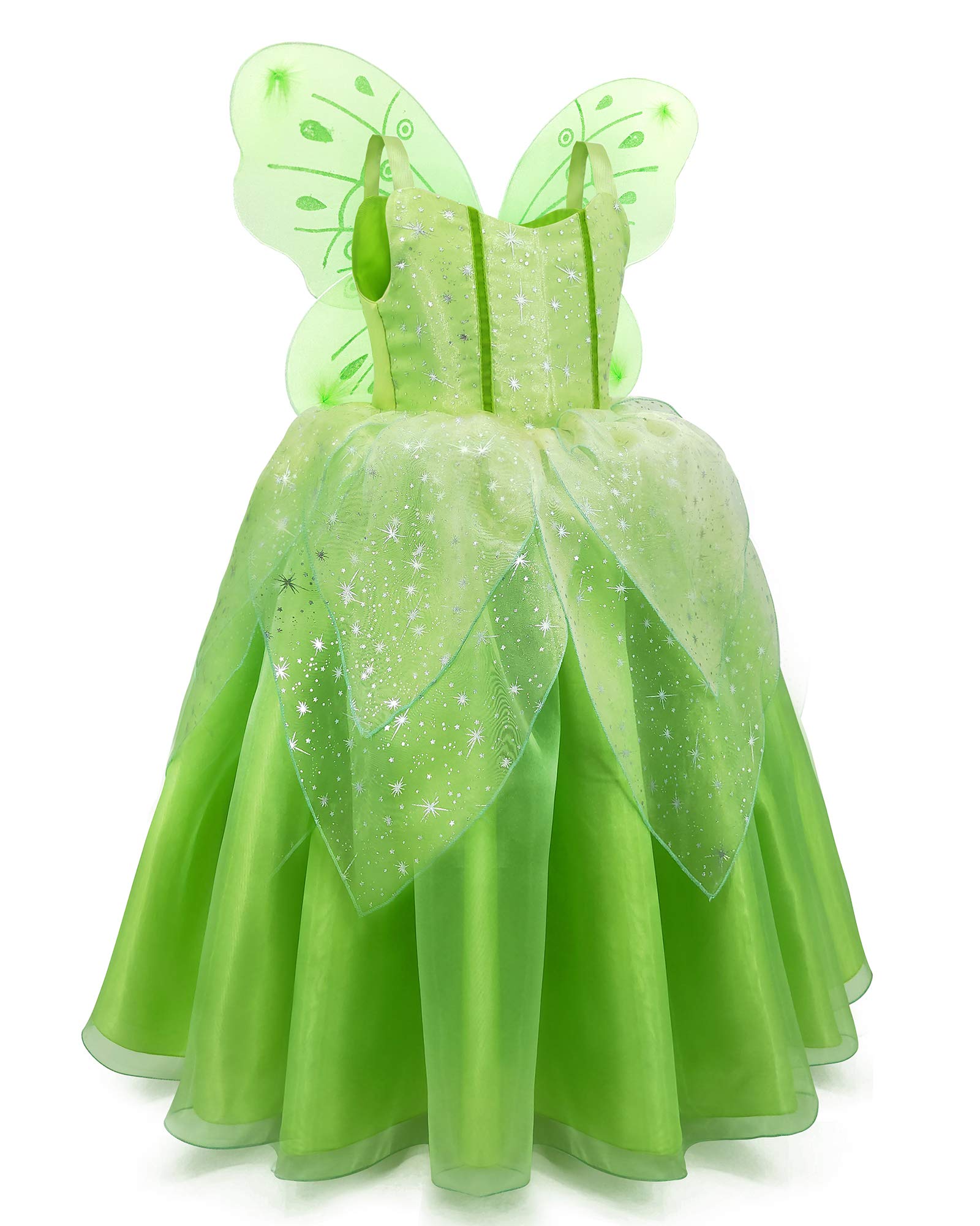 - Q: Does the costume come with wings? A: Yes, the TYHTYM Green Tinkerbell Fairy Costume includes wings as part of the outfit.