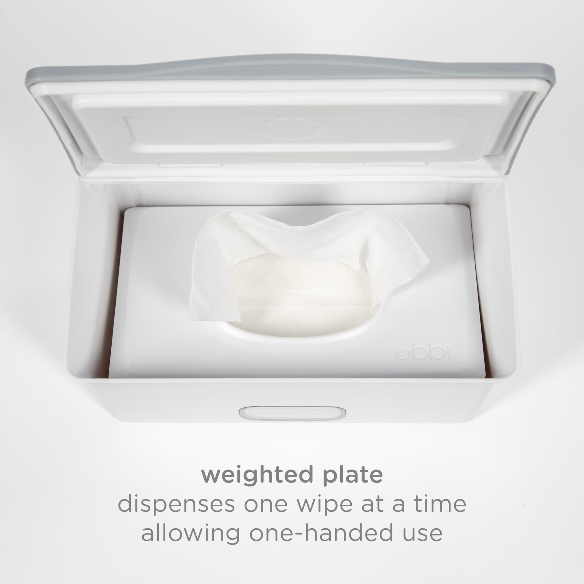 • Q: How does the weighted plate improve usability? A: The weighted plate ensures smooth, one-handed dispensing of wipes, allowing parents to easily grab a single wipe while multitasking, making it especially convenient during diaper changes.