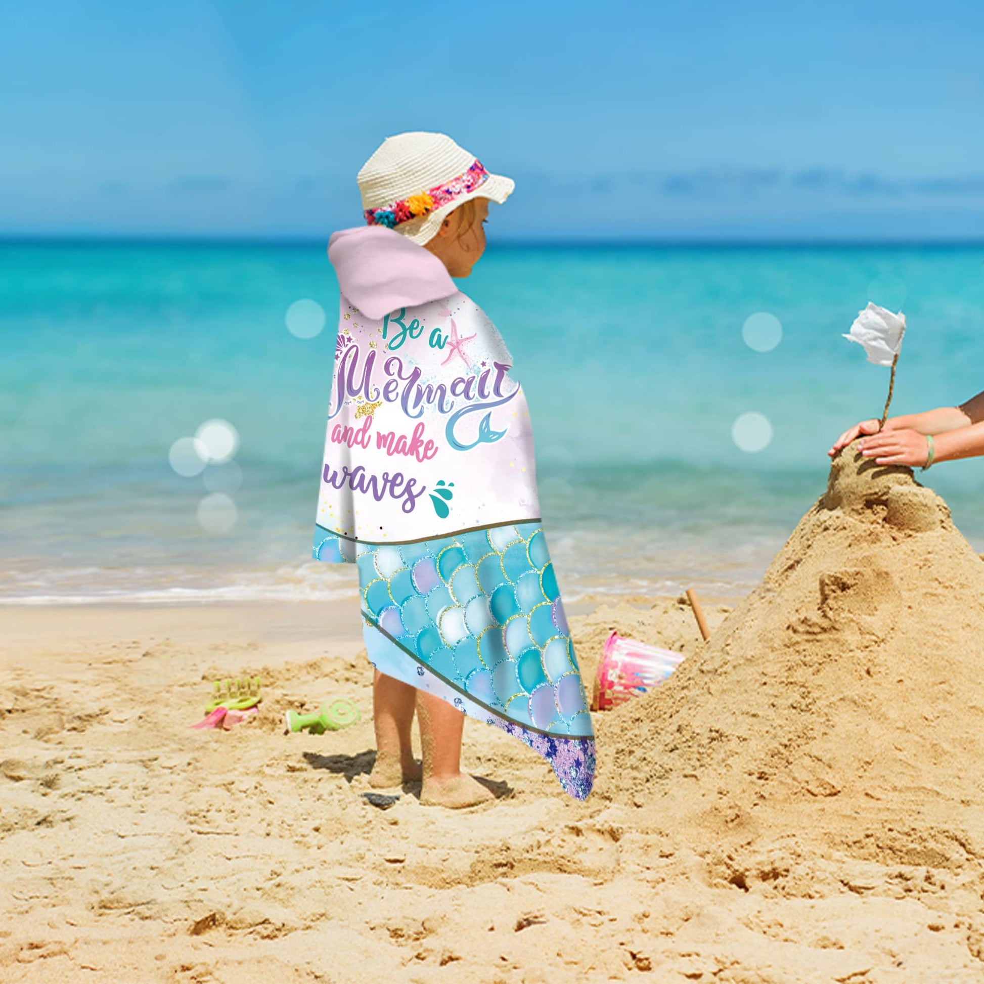 Unibyby Mermaid Beach Towel, Mermaid Hooded Towel, Mermaid Scales Tail Towel For Girls 30' X 50', Teal Microfiber Absorbent Qu